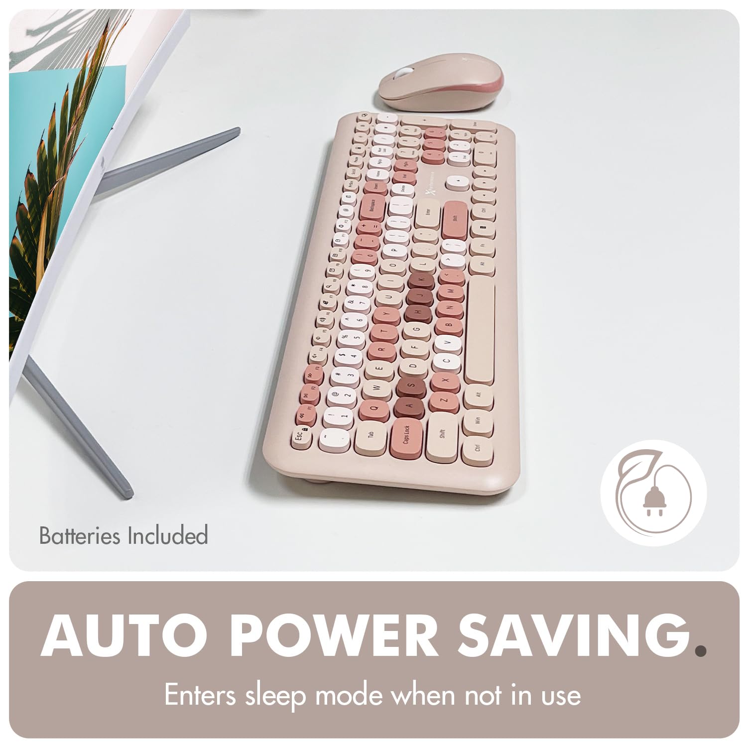 SIMPLE PLUG AND PLAY, ZERO HASSLE RETRO KEYBOARD: Begin typing on the cute keyboard and mouse combo instantly. Just plug in the USB dongle and get playful and productive. Batteries are included for this pastel keyboard and mouse.