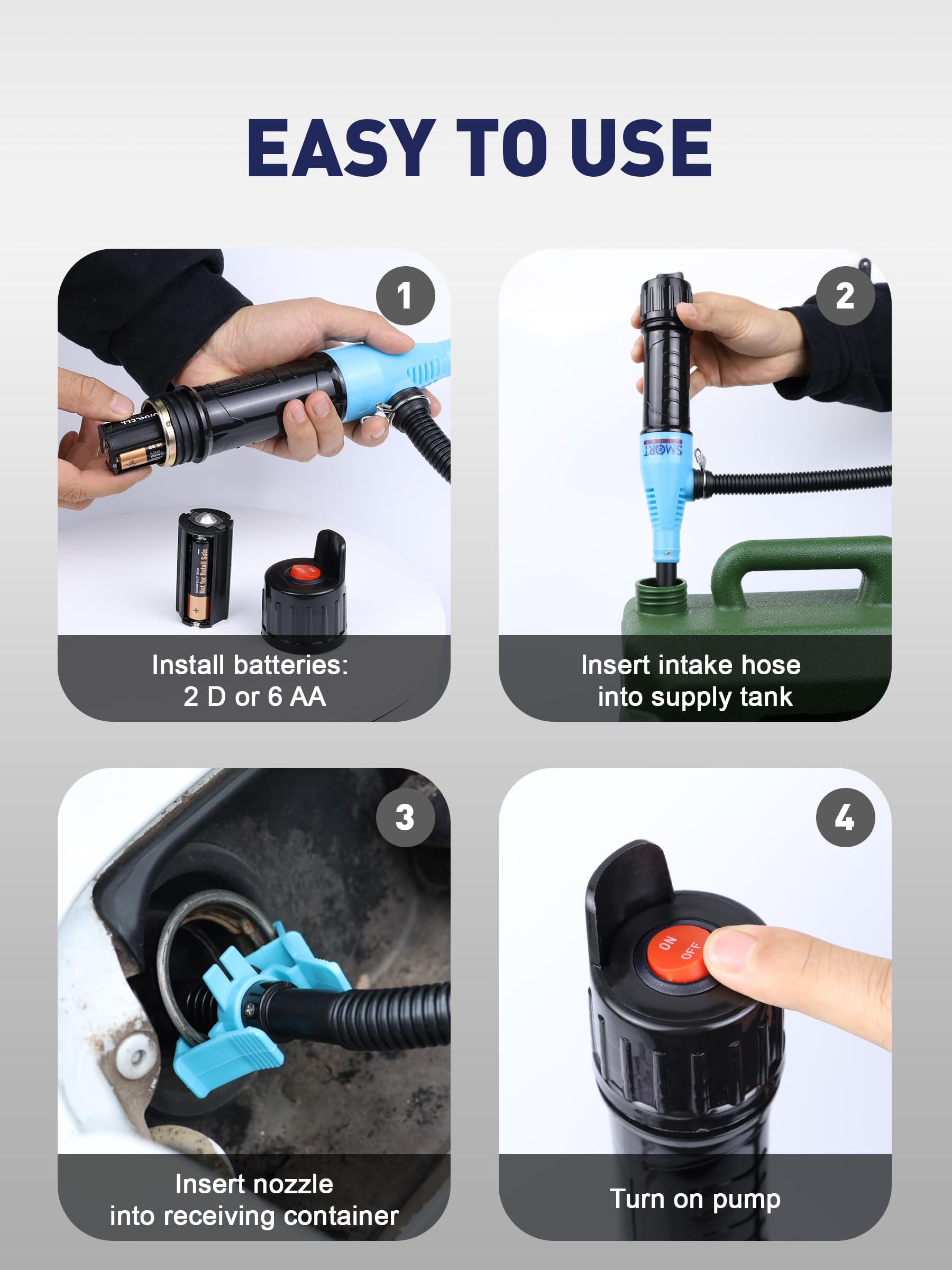 Battery Operated Liquid Transfer Pump - Operates with 2 D batteries or 6 AA batteries (battery not included), this diesel transfer pump is an ideal choose for car owners, farmers, DIY enthusiasts