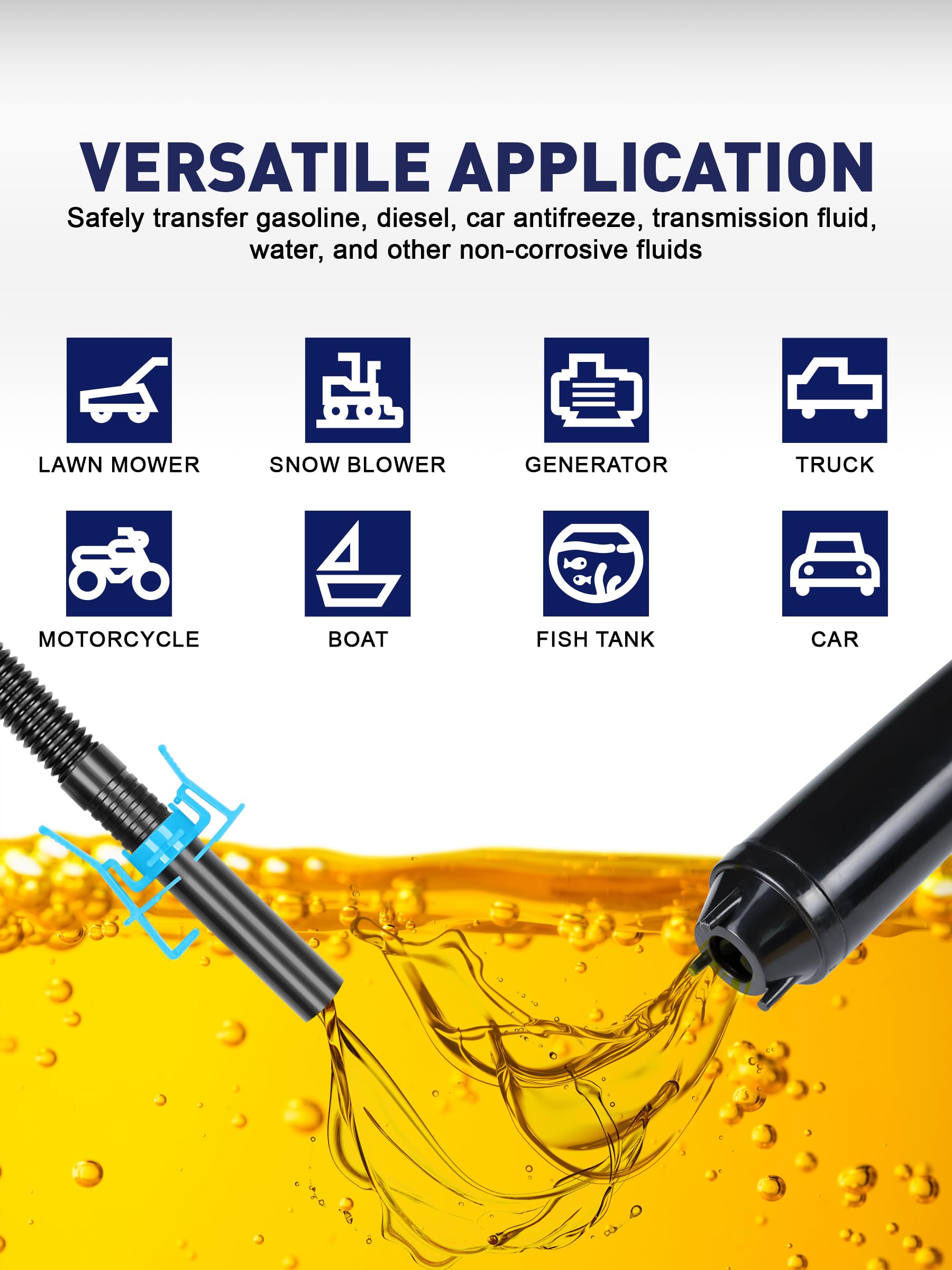 Widely Application - With its portable & light weight features, this battery powered oil pump is widely used for filling up cars, tractors, lawn mowers, agricultural machinery, or for removing water from fish tank, aquarium etc.