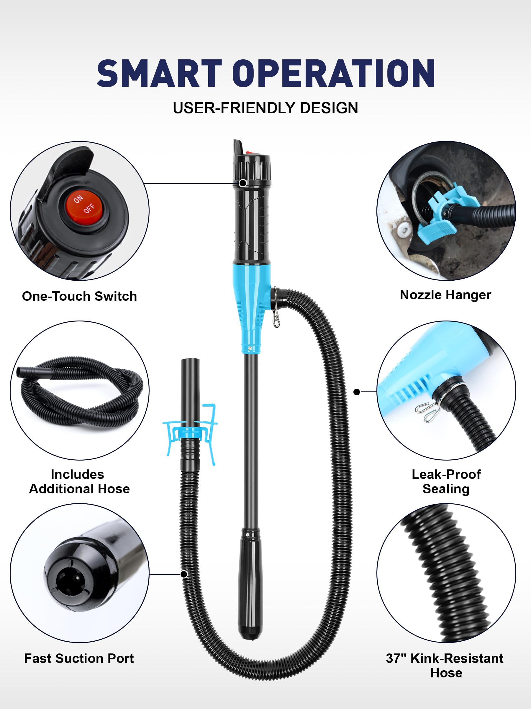Additional Hose - Equipped with an additional hose in case unexpected damage of the original hose, this electric hand pump is suggested to kept in safe place to avoid unexpected damage