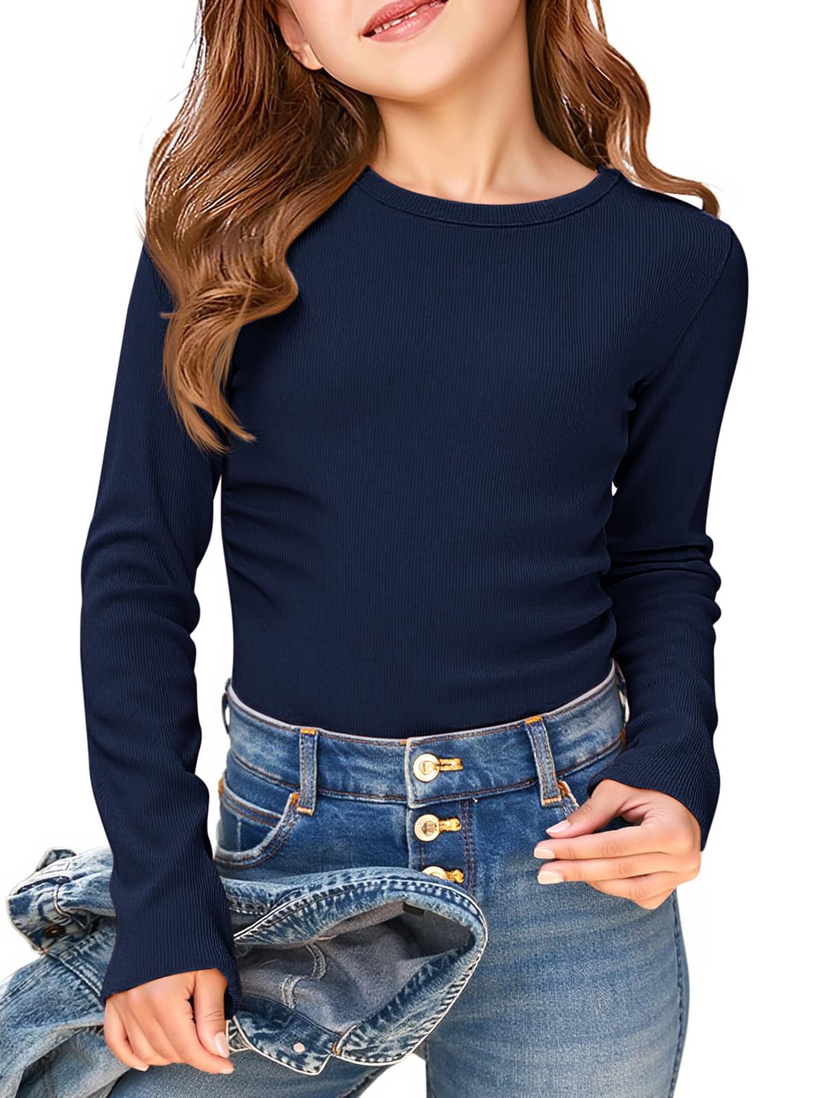 Feature: Girls fall t-shirts, long sleeved basic tees, relaxed fit, solid color never out of date, the crewneck design adds a touch of classic style that goes with just about anything