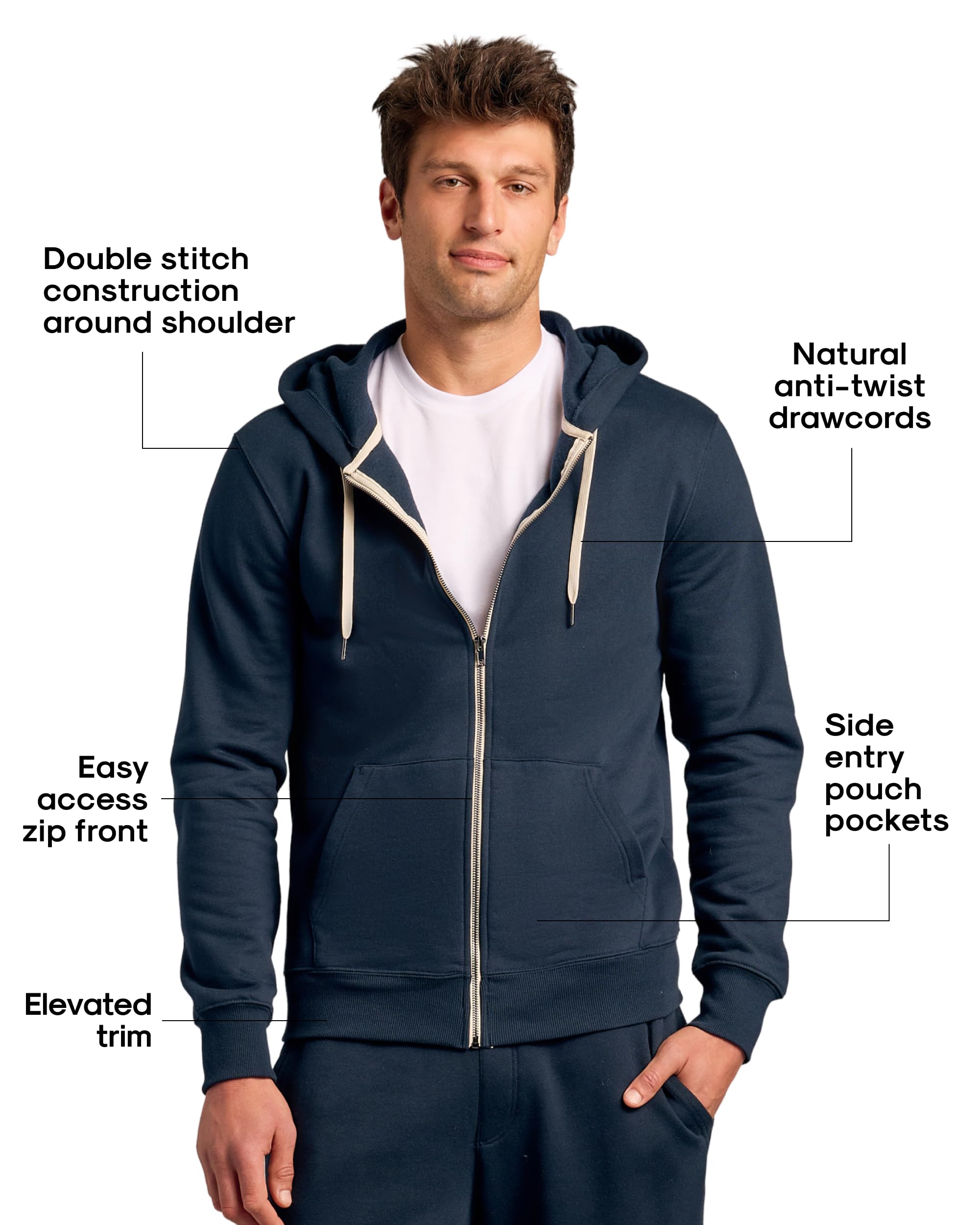 VERSATILE OPTIONS, CLEAN DETAILS: Choose your go-to: classic pullover with roomy pouch pocket, sleek zip hoodie with easy front zip and side-entry pockets, or the streamlined Active Hoodie. Premium trims and double-stitching elevate everyday style.