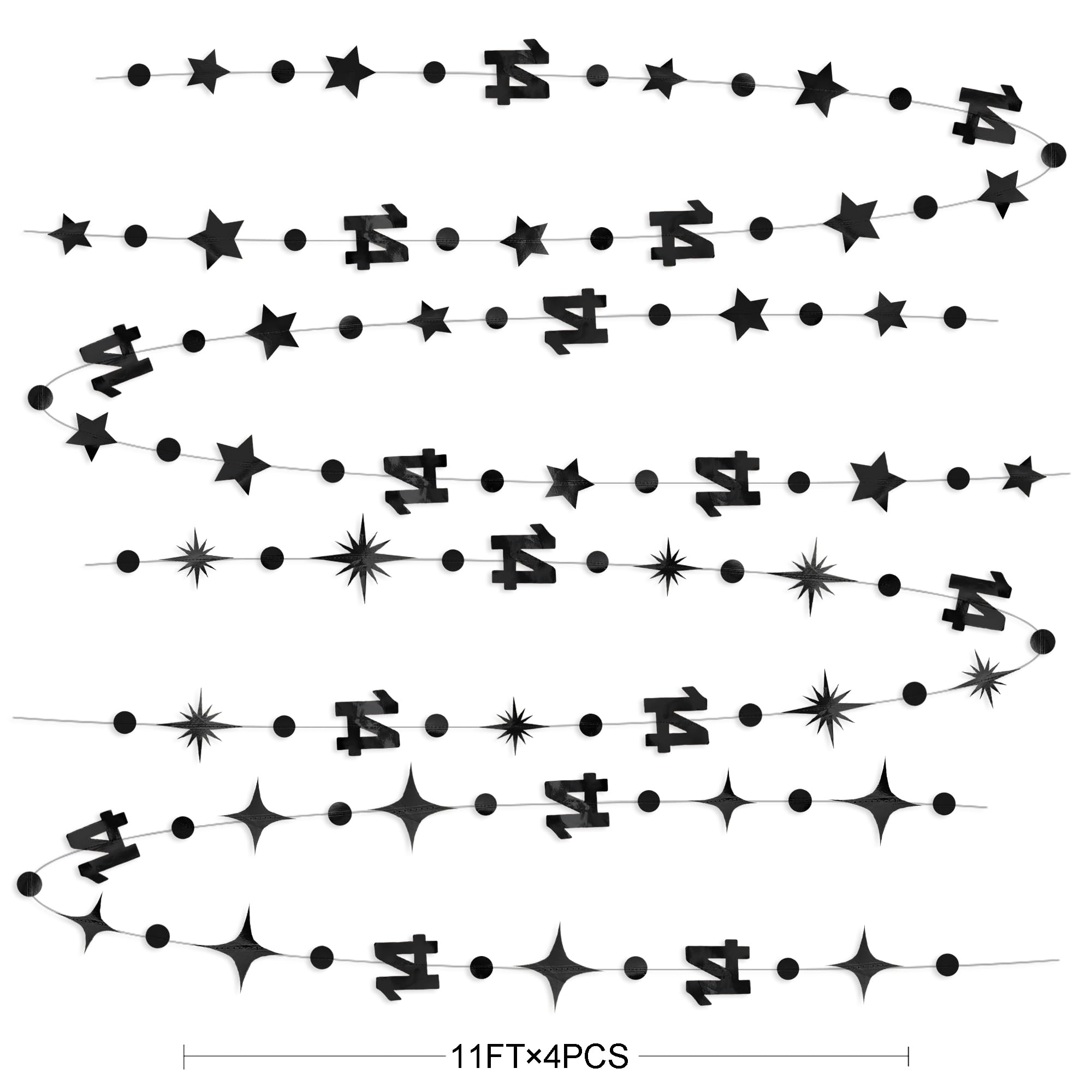 👍 Package includes - 4 strings of 11.5 feet/3.5 meters black number 14 sparkling twinkle star and circle dots garlands , totally is 46 feet/14 meters.