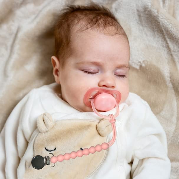 【UNIQUE DESIGN】The paci clips with elegant and chic, vintage inspired colors. This pacifier clips was benefit for visual perception, motor, sensory development. It's useful for aged 3-36 months baby
