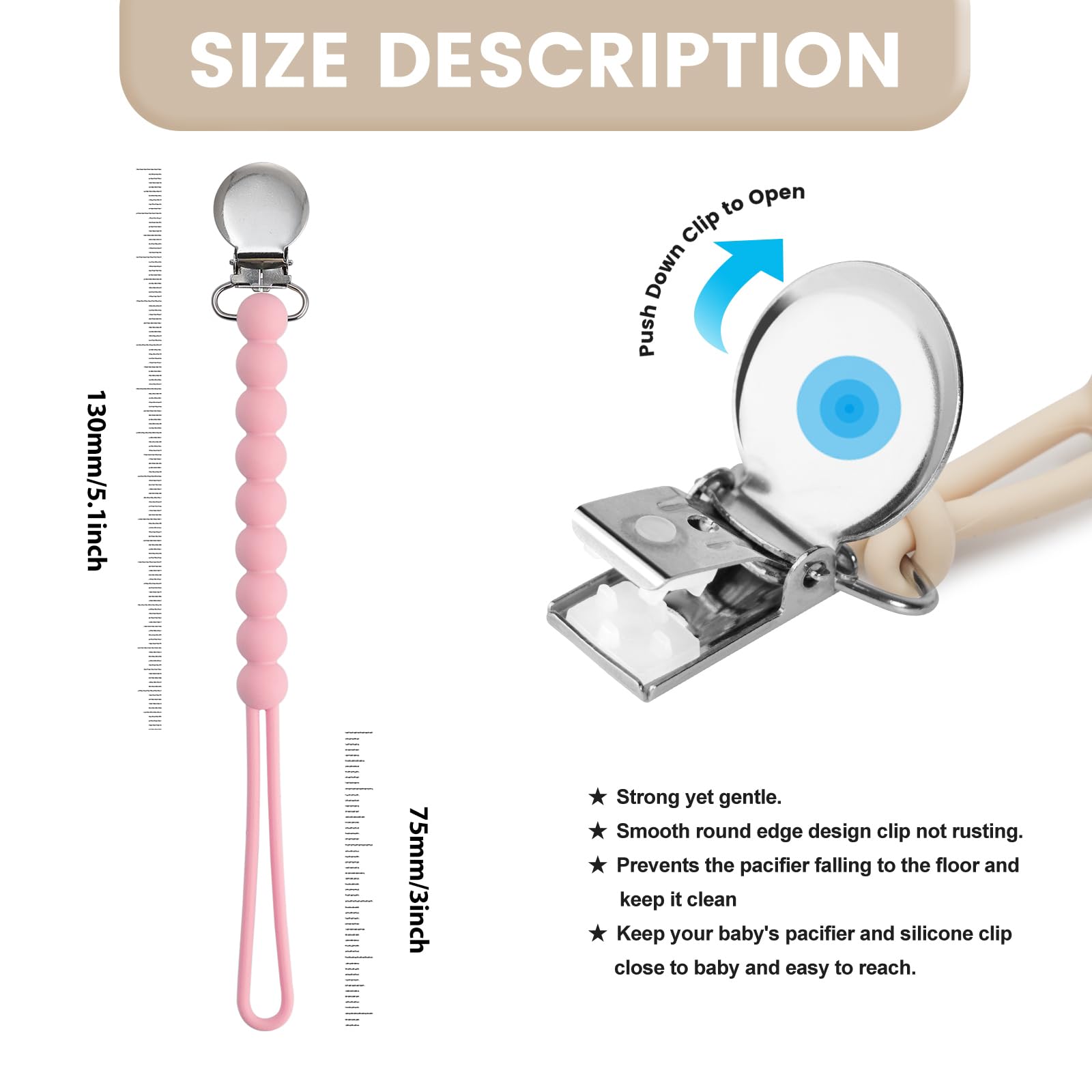 【FOOD GRADE STANDARD】Length:23cm Weight: 0.8oz. BPA Free Pacifier Clip. No pvc, cadmium, lead, phthalates