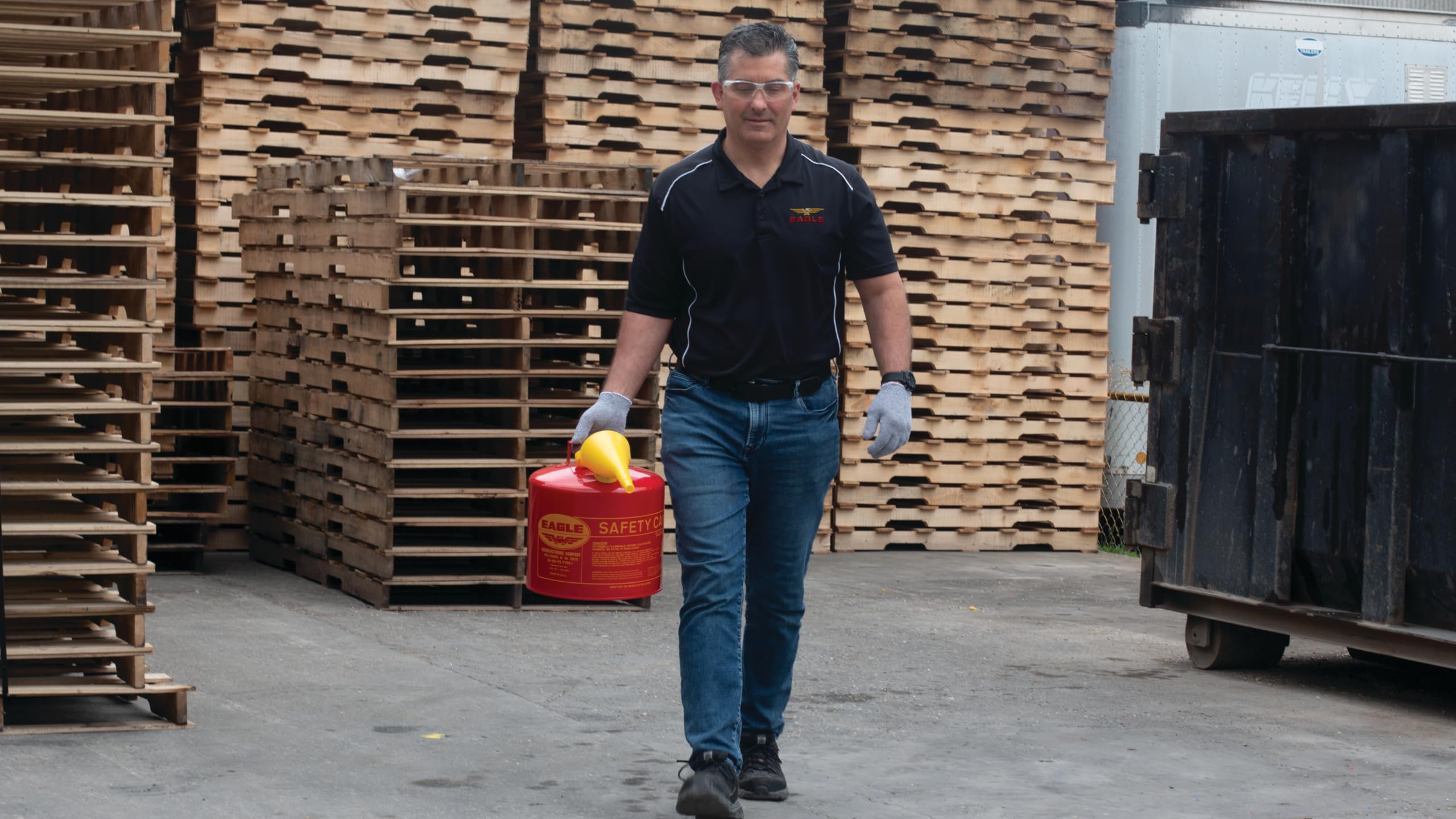Product Description Eagle 5 Gallon Type I Red Safety Gas Can for Gasoline with Flame Arrester, Self-Closing Lid, and F-15 Funnel, Made in the USA, Galvanized Steel Flammable Storage Can, UI50FS From the Manufacturer Eagle 5 Gallon Red Safety Gasoline Can meets OSHA and NFPA Code 30 requirements and are UL and ULC listed and are FM Factory Mutual approved for the safe handling and storage of gasoline and other flammable liquids. Eagle cans feature Lead Free Technology, constructed of 24-gauge hot dipped Galvanized steel, deep drawn one piece seamless body construction, non sparking brass integral pour spout, with a spring closing lid with neoprene gasket which vents at 3-5 psi internal pressure. The can features a fixed handle and patented comfort grip trigger release for easy dispensing, a double interlock no-weld bottom seam, 100% Leak tested, and a baked on red powder coat finish. Eagle cans are made in the USA, by USA workers and with USA quality. Family owned business making quality products since 1894 in Wellsburg, West Virginia
