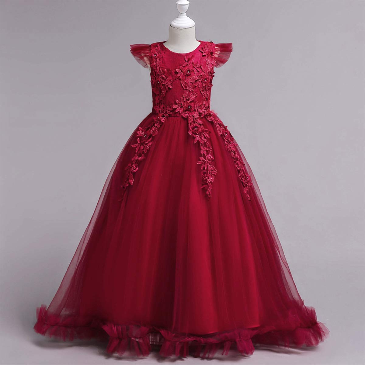 Kids little big girls sleeveless round neck princess dress tulle spliced full length evening party prom gown, elegant and gorgeous design,Carnival Event birthday party fall dressing up clothes,it will make your girl beautiful and feel like a princess