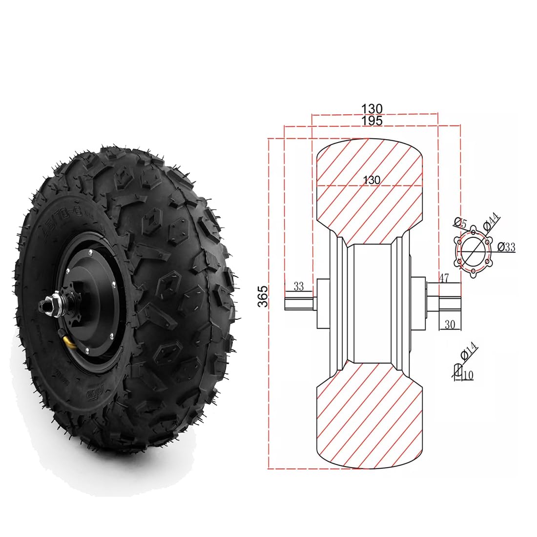 24V 36V 48V 350W Wheelbarrow Cart Gear Hub Motor Kit Off Road 14.5 Inch Wheel
