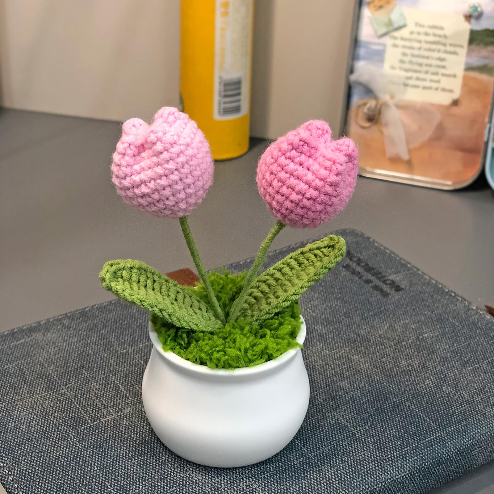 2.【Material】This crocheted potted flower uses high-quality yarn with accurate color, no pilling, and no fading, making it suitable for long-term preservation.The pot is made of plastic.The pot measures 1.57 inches (4cm) in height and 1.97 inches (5cm) in width.