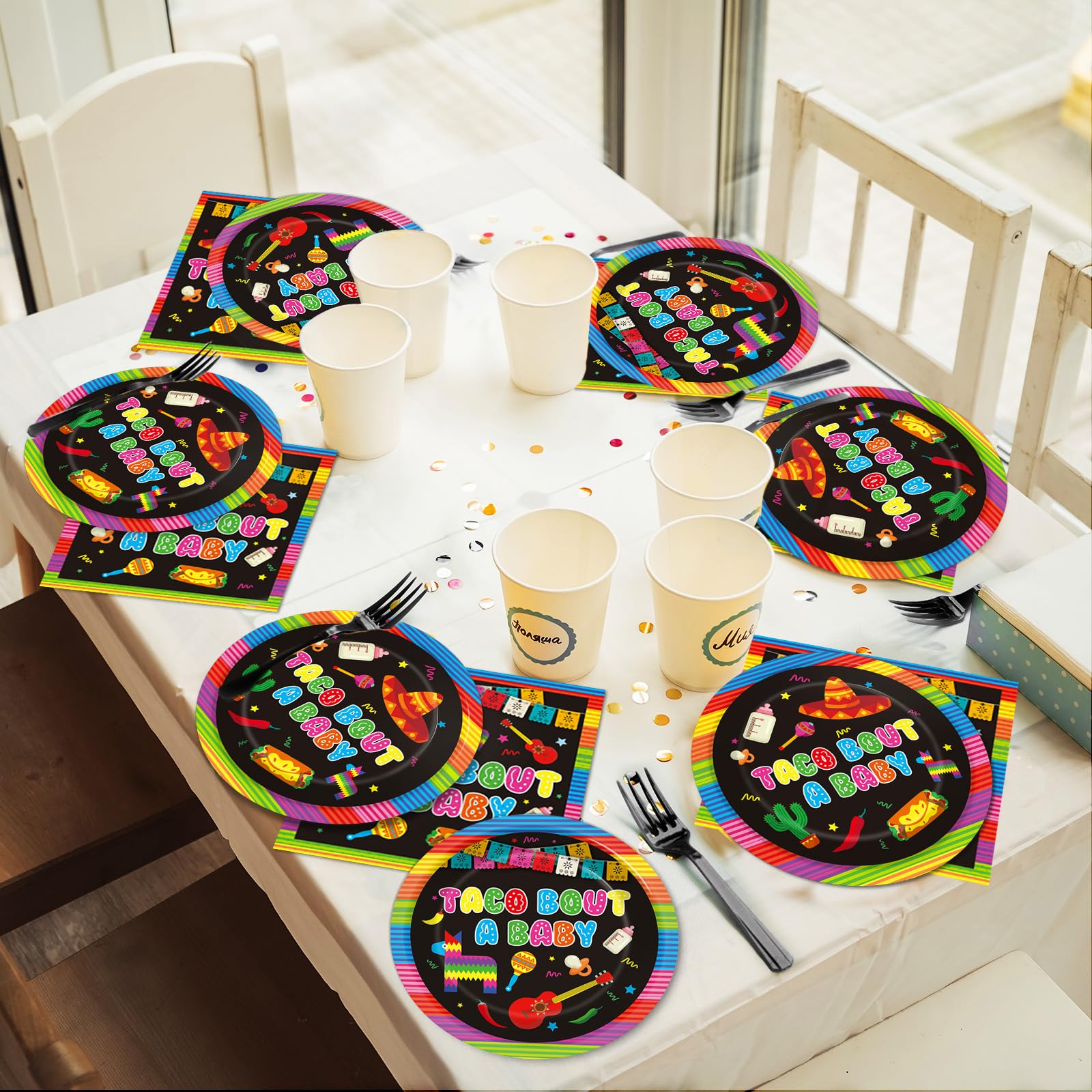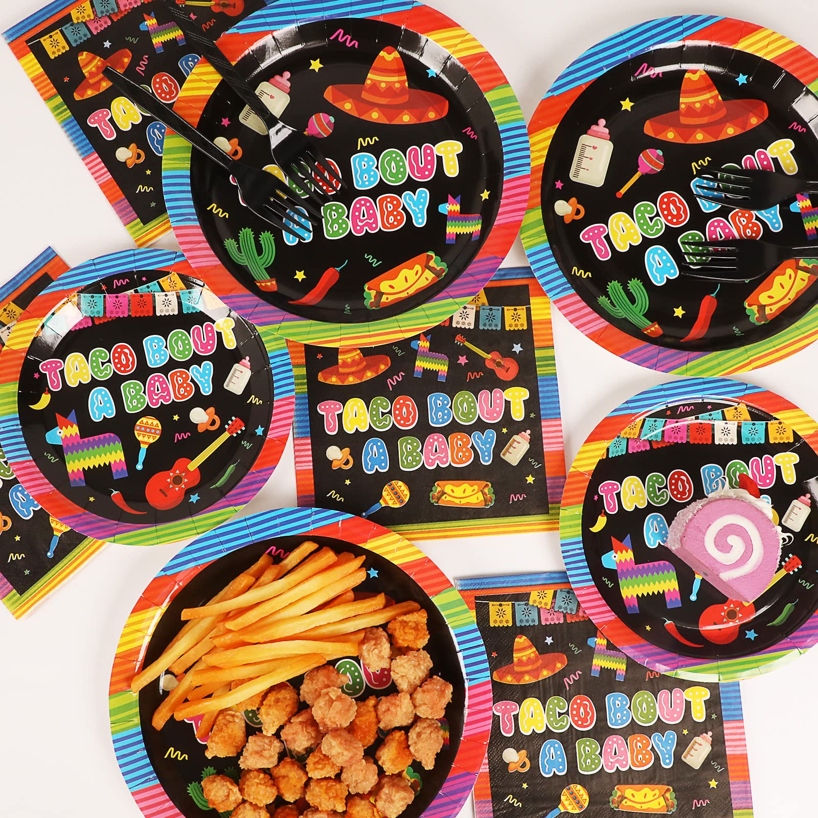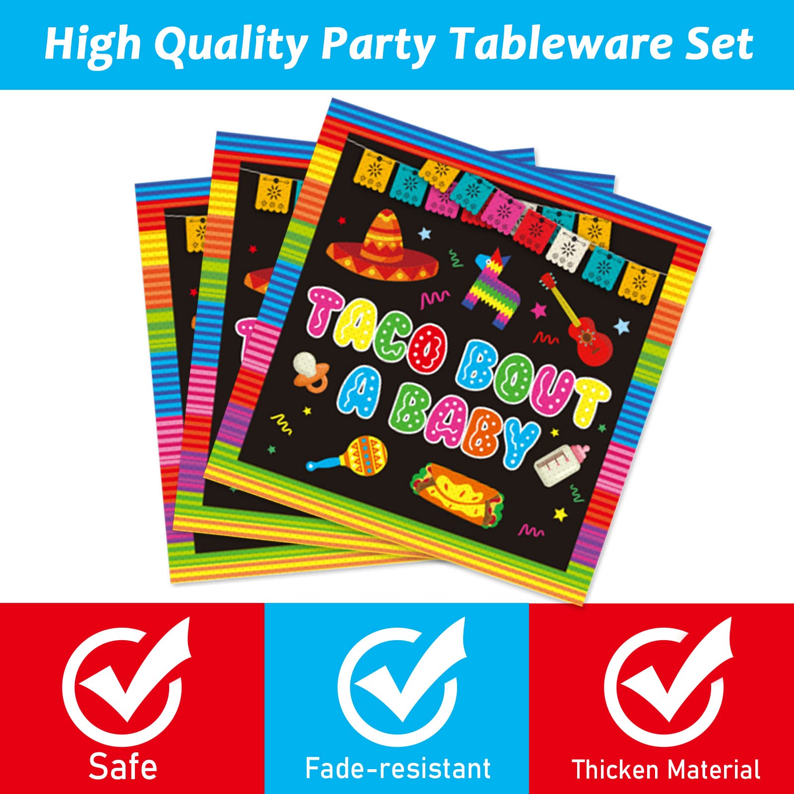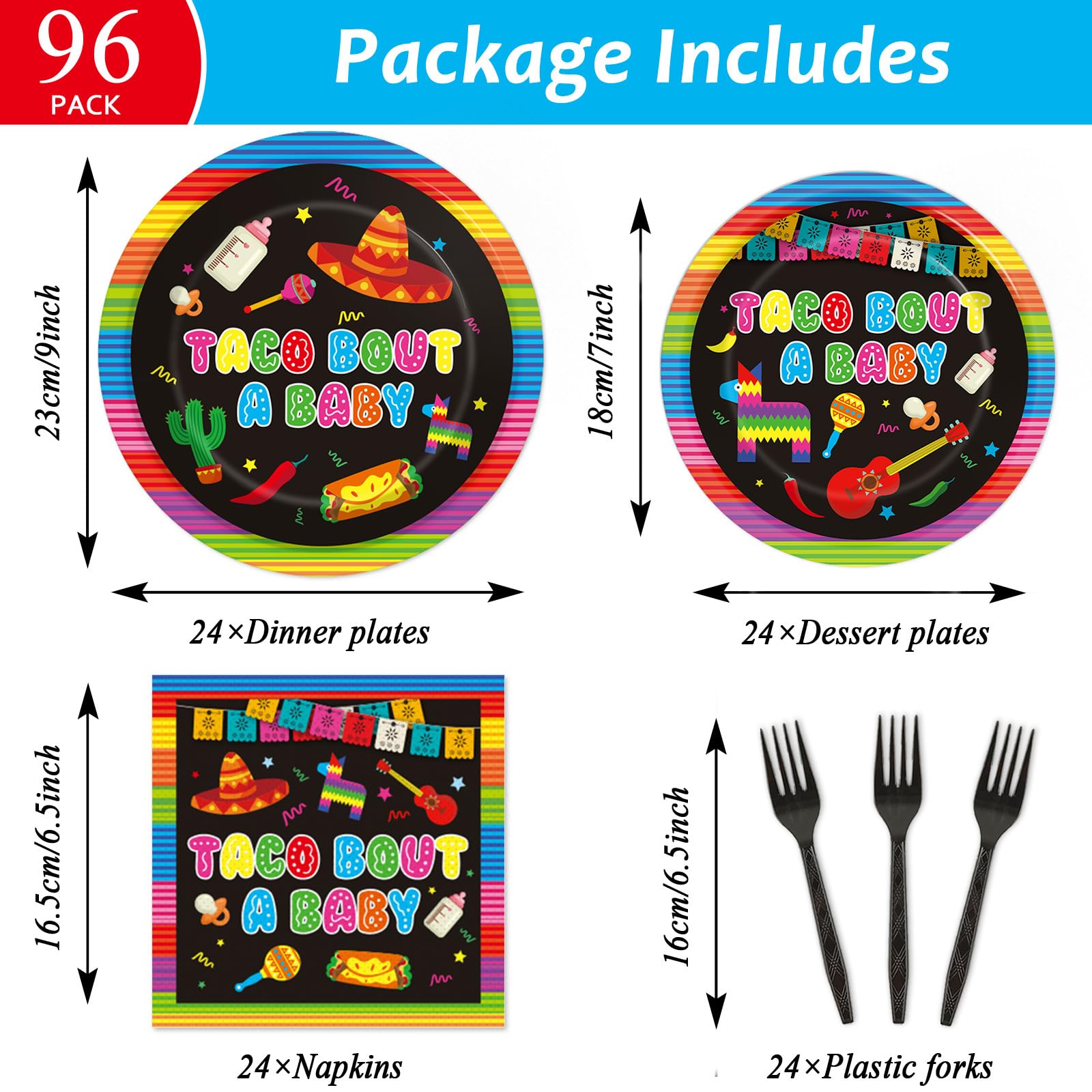 Disposable and Convenient:Taco bout a baby tableware are made of disposable materials, easy and quick to put away after-party tableware, saving you time and allowing you and your guests to enjoy the party to the fullest.