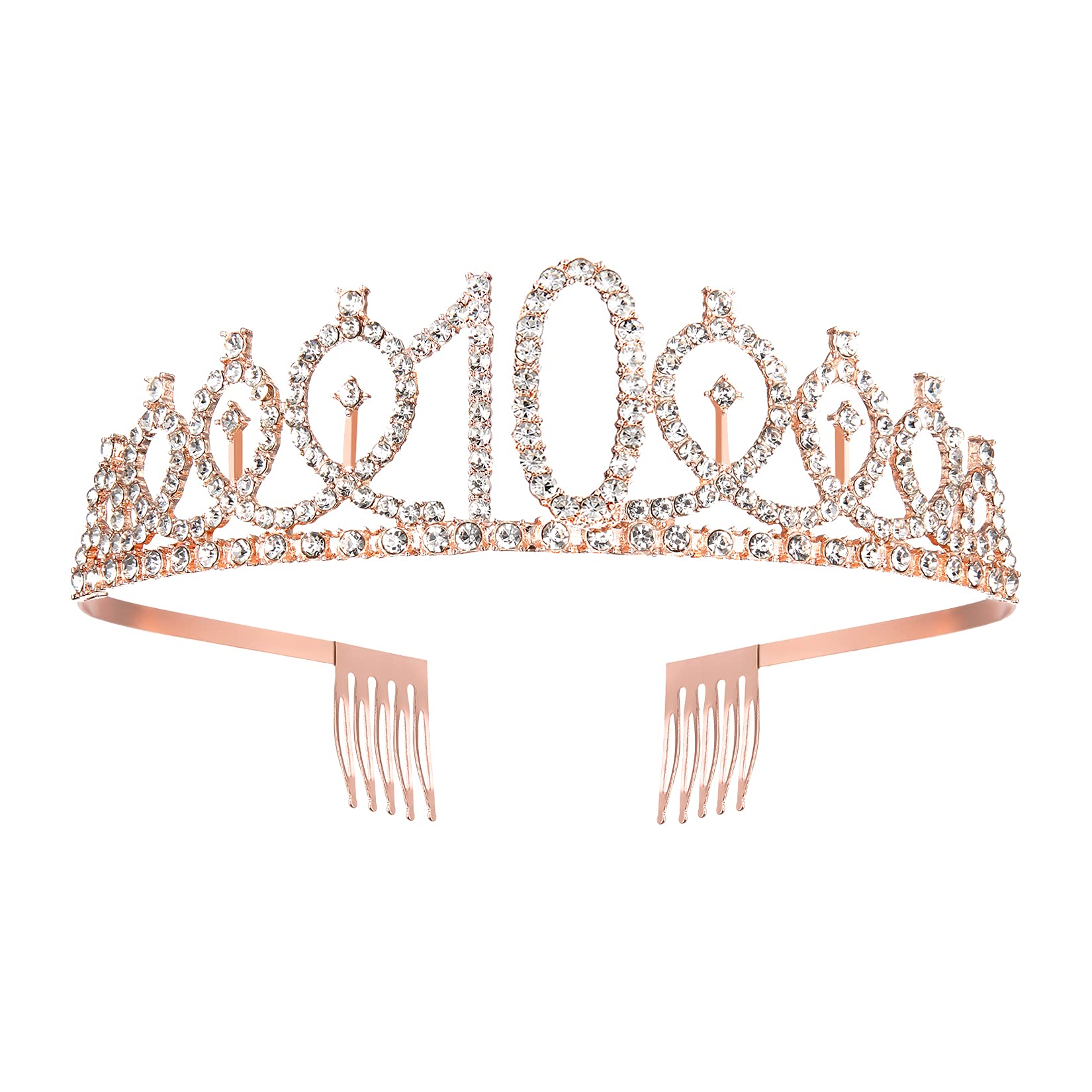 Birthday sash and tiara Set is great birthday gift for her! Wearing the sash the tiara to make the birthday girl special and stand out from the crowd. BIRTHDAY sash color: rose gold size: Approximately 62INCH long Rhinestones Tiara material: Alloy technique: hand made size: Fit girls and adult head sizes. Pearl pin: pretty so much and can help adjust the length of the sash Happy Birthday cake topper: Glitter Happy birthday cake topper is good decoration to your birthday party. Package: The kit comes in a small box package.