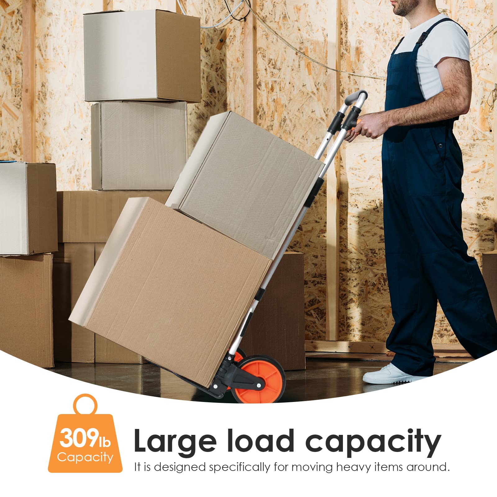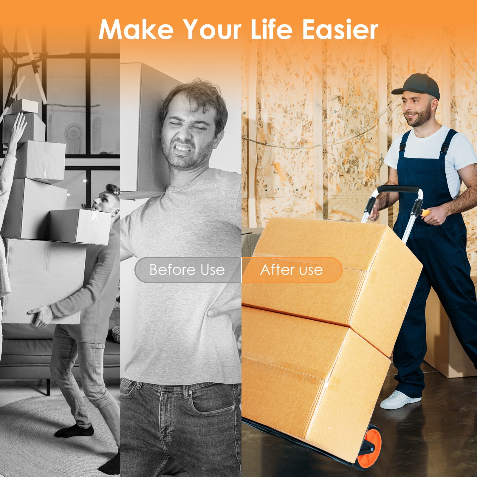 【Lightweight, sturdy and convenient】: Folding hand truck is perfect for home or office use, easy to carry and can be easily stored in the car trunk, under the bed, closet, storage room or garage. Easy solution to move a few boxes of water, pick up express parcels, garden potting soil, luggage handling, warehouse goods delivery, moving, office daily use, etc.