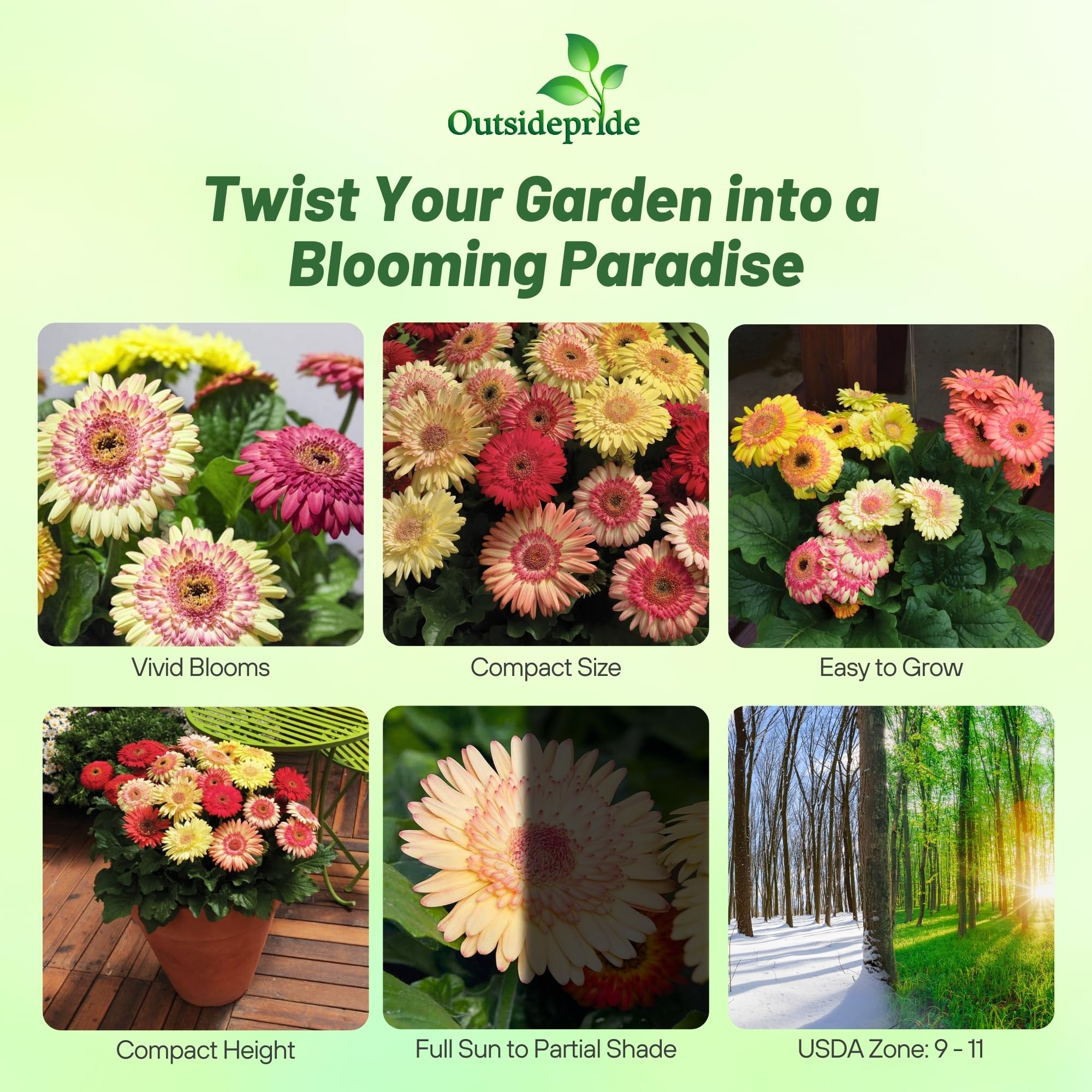 VIBRANT SEMI-DOUBLE BLOOMS: Brighten your garden with the stunning colors of Strawberry Twist Mix Gerbera Daisy Seeds in vibrant designer hues. With semi-double blooms, our large dazzling flowers add a pop of charm and elegance, transforming any indoor and outdoor space into a colorful oasis. Perfect for garden beds, pots, or as cut flowers, their bold, eye-catching appeal is sure to impress.