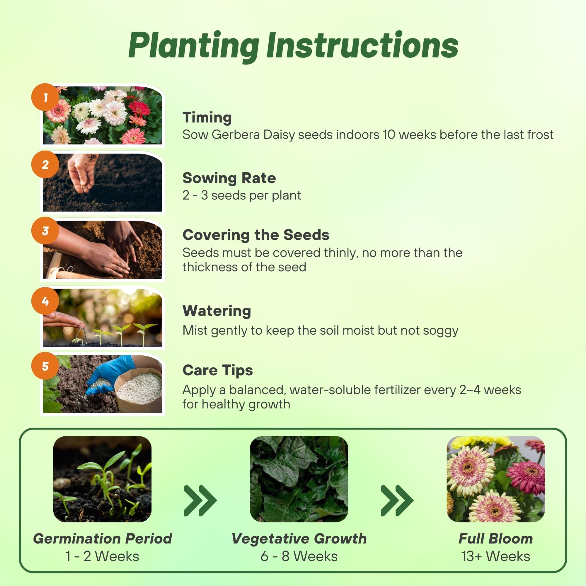 LOW-MAINTENANCE & VERSATILE: Thriving in full sun to partial shade, our hardy plants only require a sow rate of 2-3 seeds per plant in a well-drained soil (pH 6.1-7.5) with 10-15 inch spacing, then cover thinly under 70F degrees while allowing a germination time of 10-21 days for optimal results. Their versatility makes them ideal for landscaping, cutting gardens, pots, and indoor arrangements.