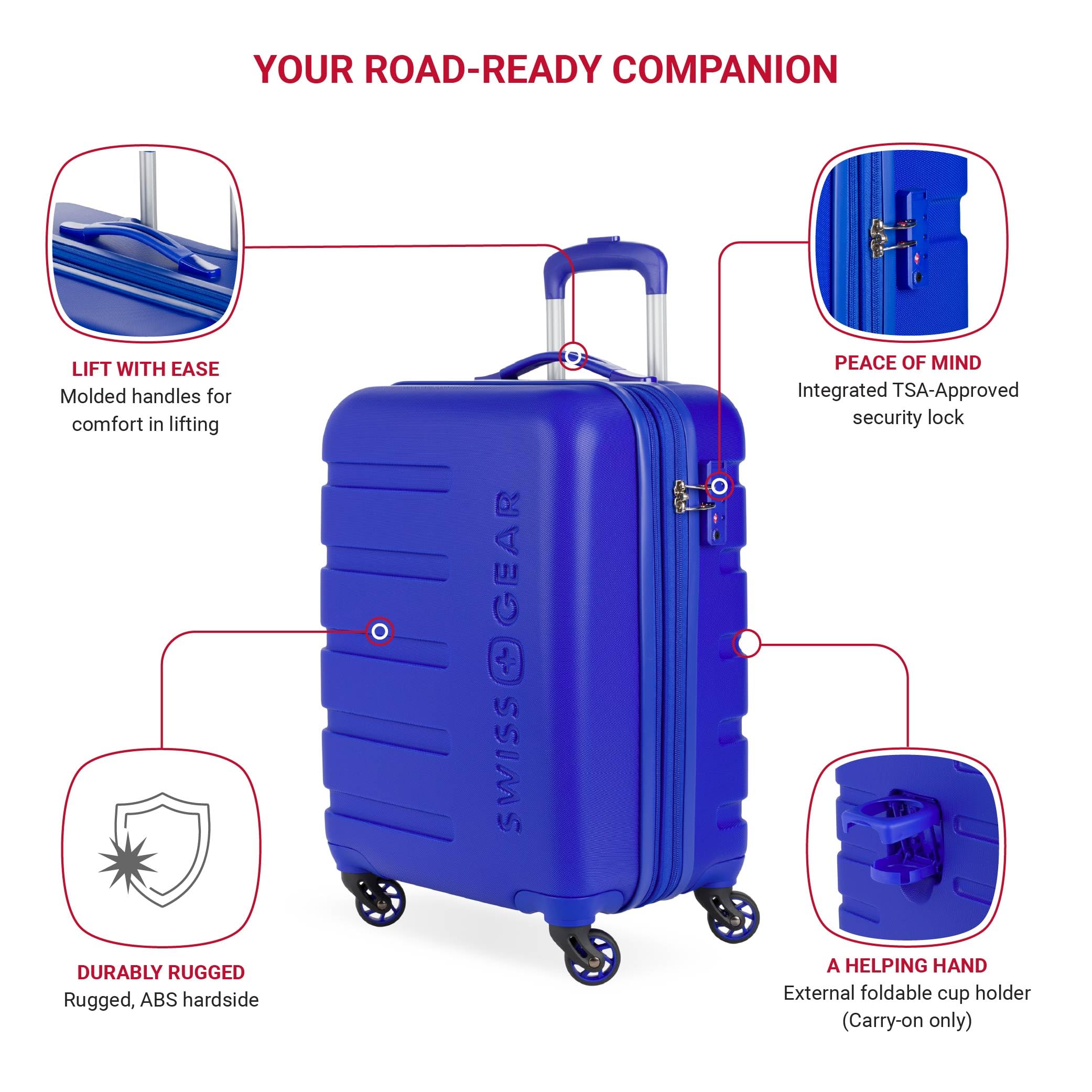 Durable Design: Designed to withstand wear and tear without compromising on quality or appearance, our luggage features a durable ABS construction and retractable molded lift handles for added convenience