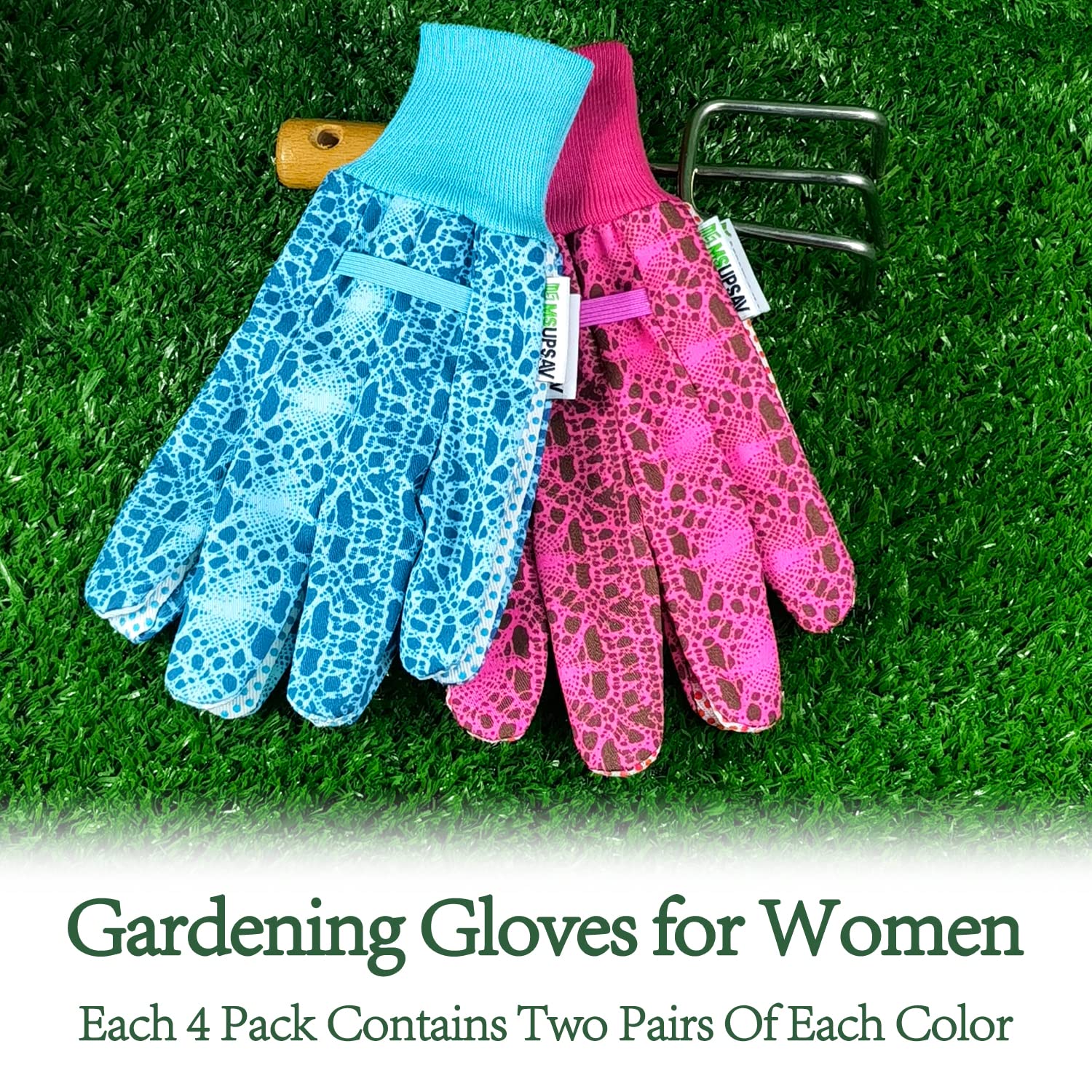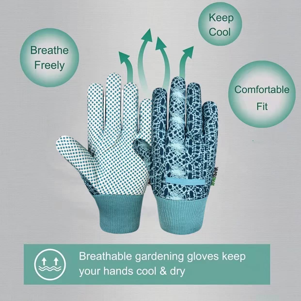 Material-Back➡Two styles of breathable canvas fashion patterns design, Palm➡PVC dots on the palm offers more durable & non-slip.Knit wrist➡:soft knit wrist provides a snug fit for protection from dirt.