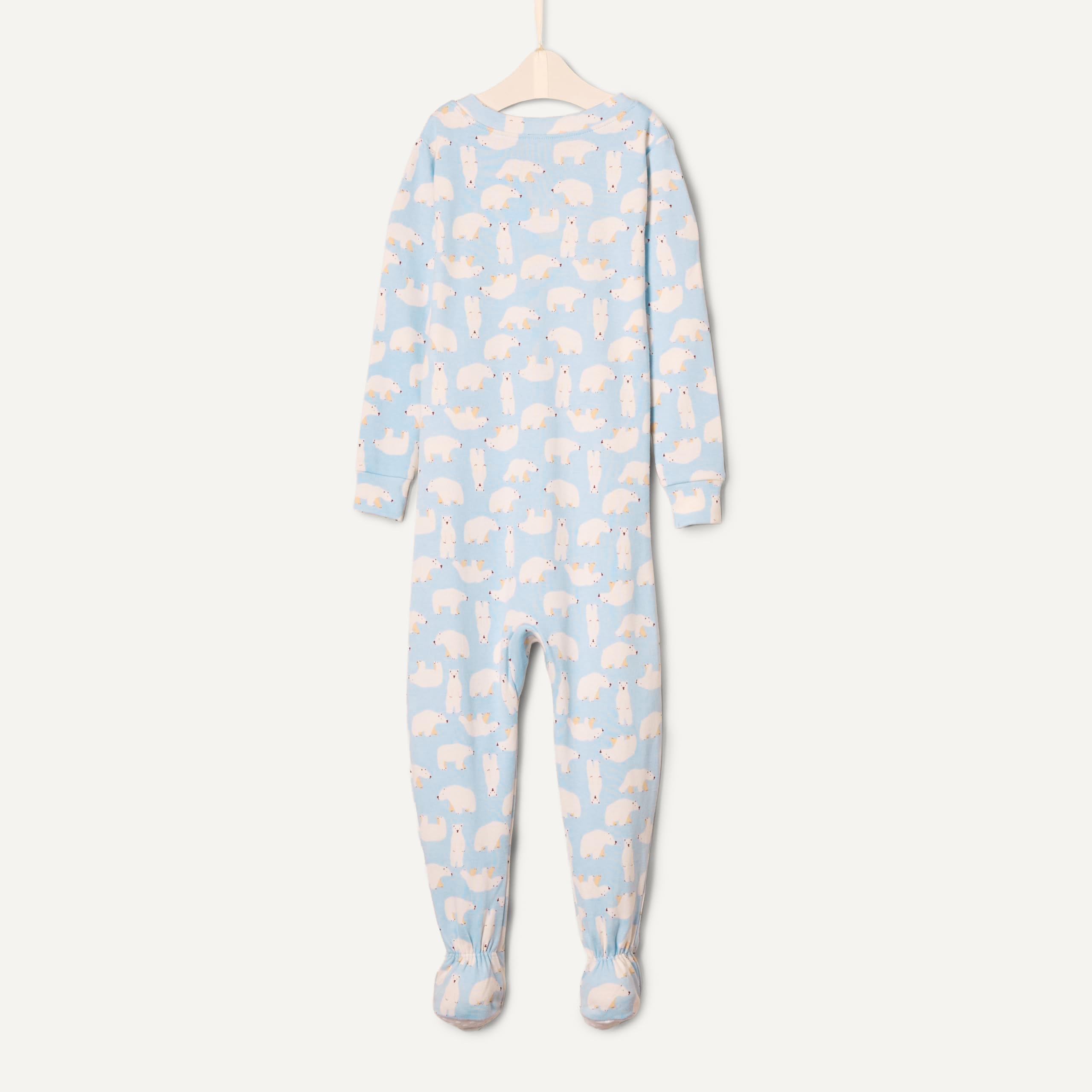 DETAILS: Ribbed cuffs and neck, full ankle-to-chin one-way zipper and attached feet with anti-slip dots on the sole. Designed to be a full-length inseam