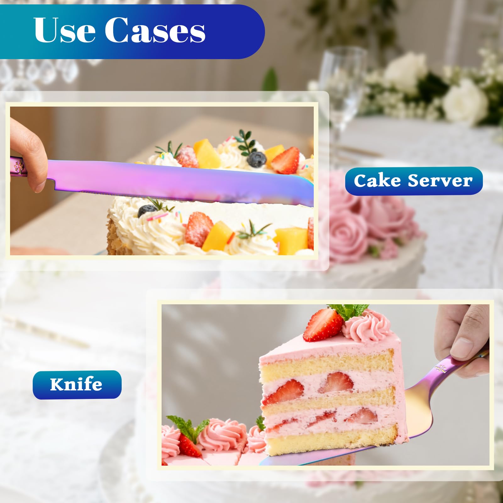 Durability: The cake cutting set for wedding with all stainless steel handles and spatulas, that is rust and corrosion resistant, sturdy and not easy to bend, and won't come loose and separate and fall off