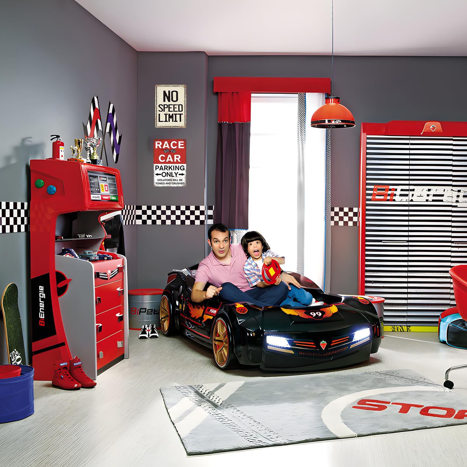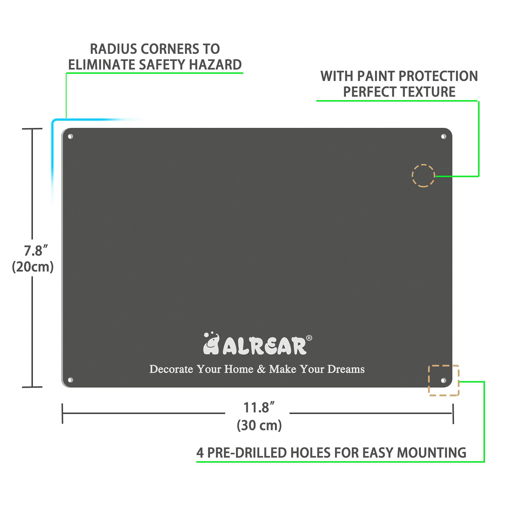 4 pre-drilled holes for style and easy hanging on the boys room wall.