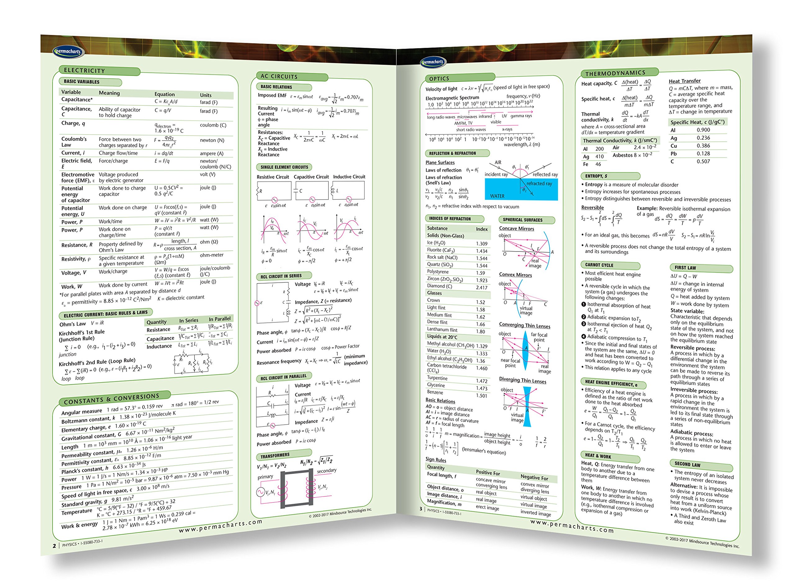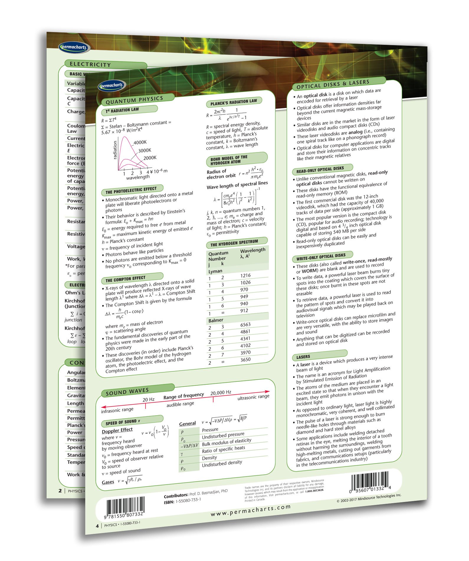 4-page 8.5" x 11" laminated Physics quick reference guide