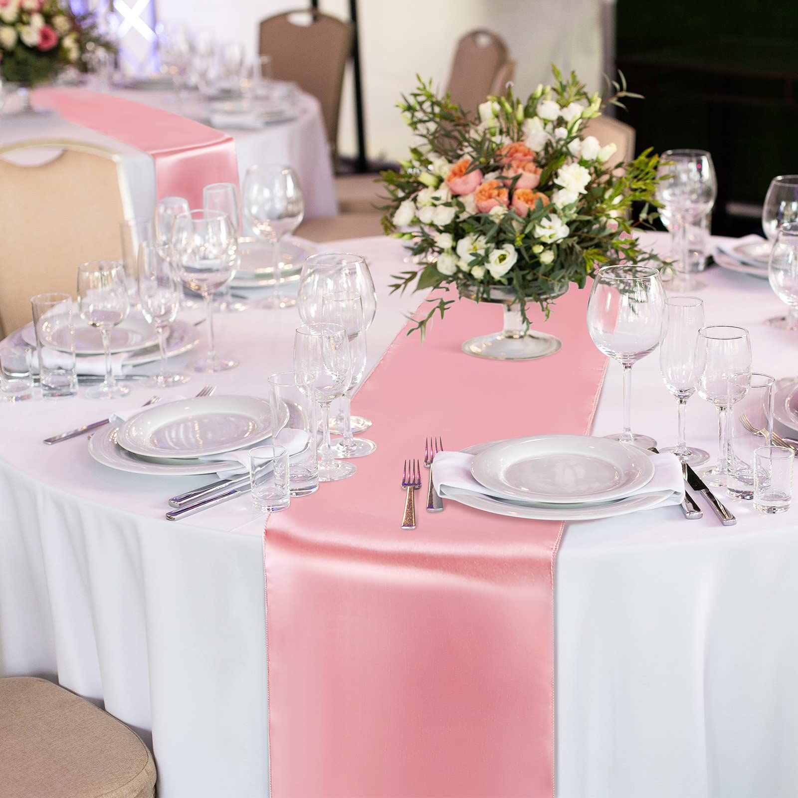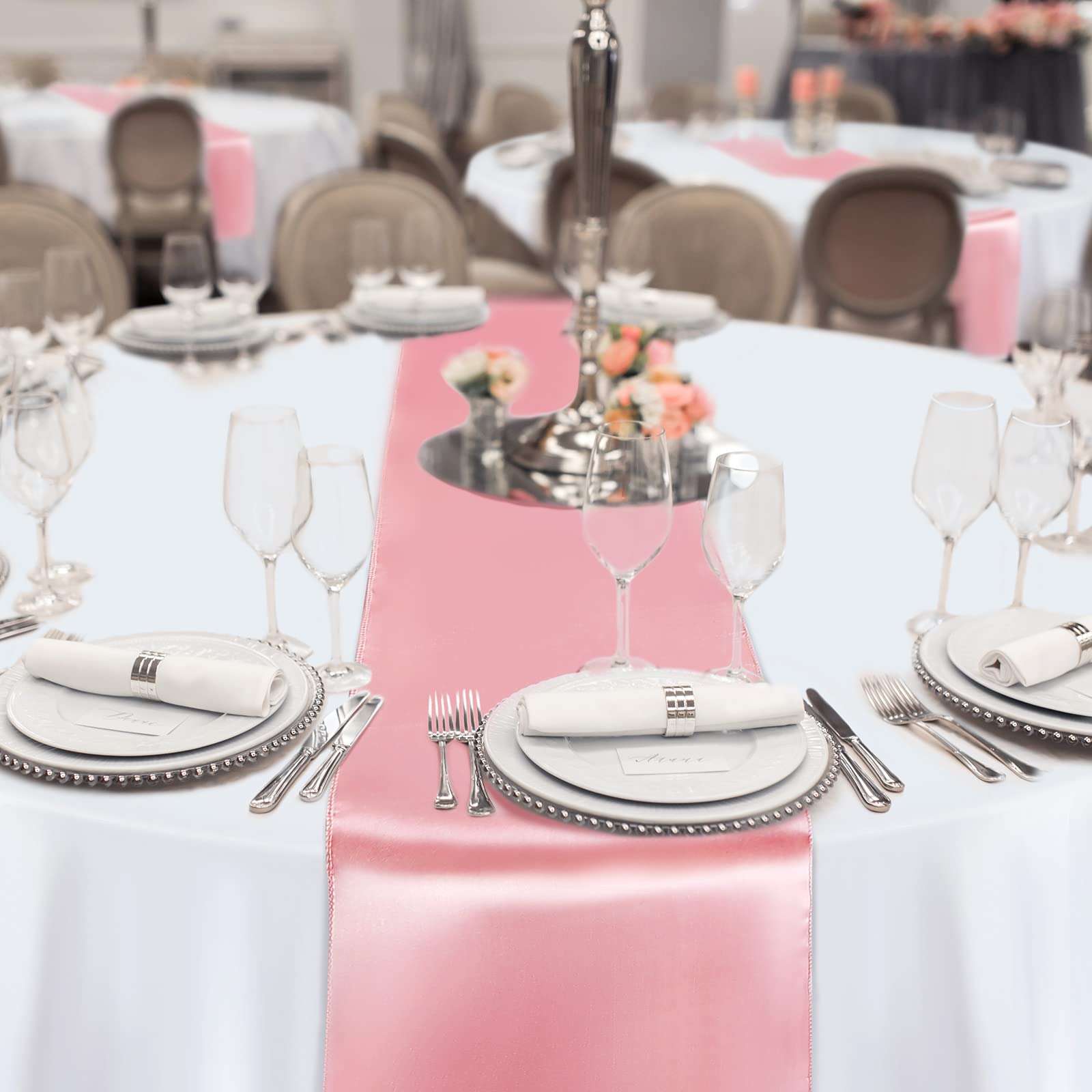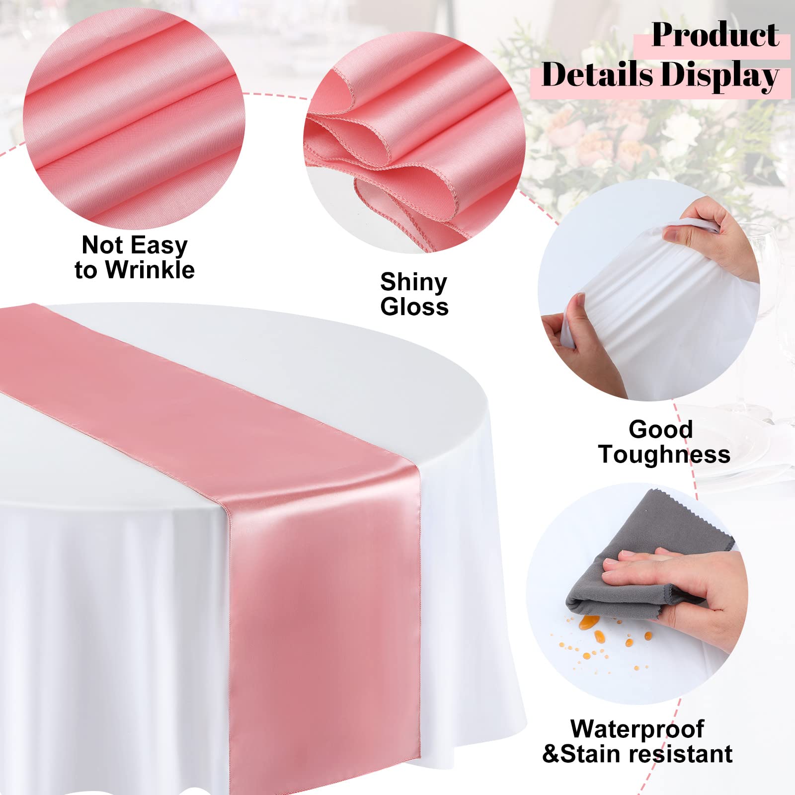 Fits Most Round and Rectangular Tables: Each rose gold satin runner measures 12 x 108 inches and fits most standard rectangular or round tables. The round tablecloths are 84 inches in diameter, covering most family, banquet, or buffet tables with ease