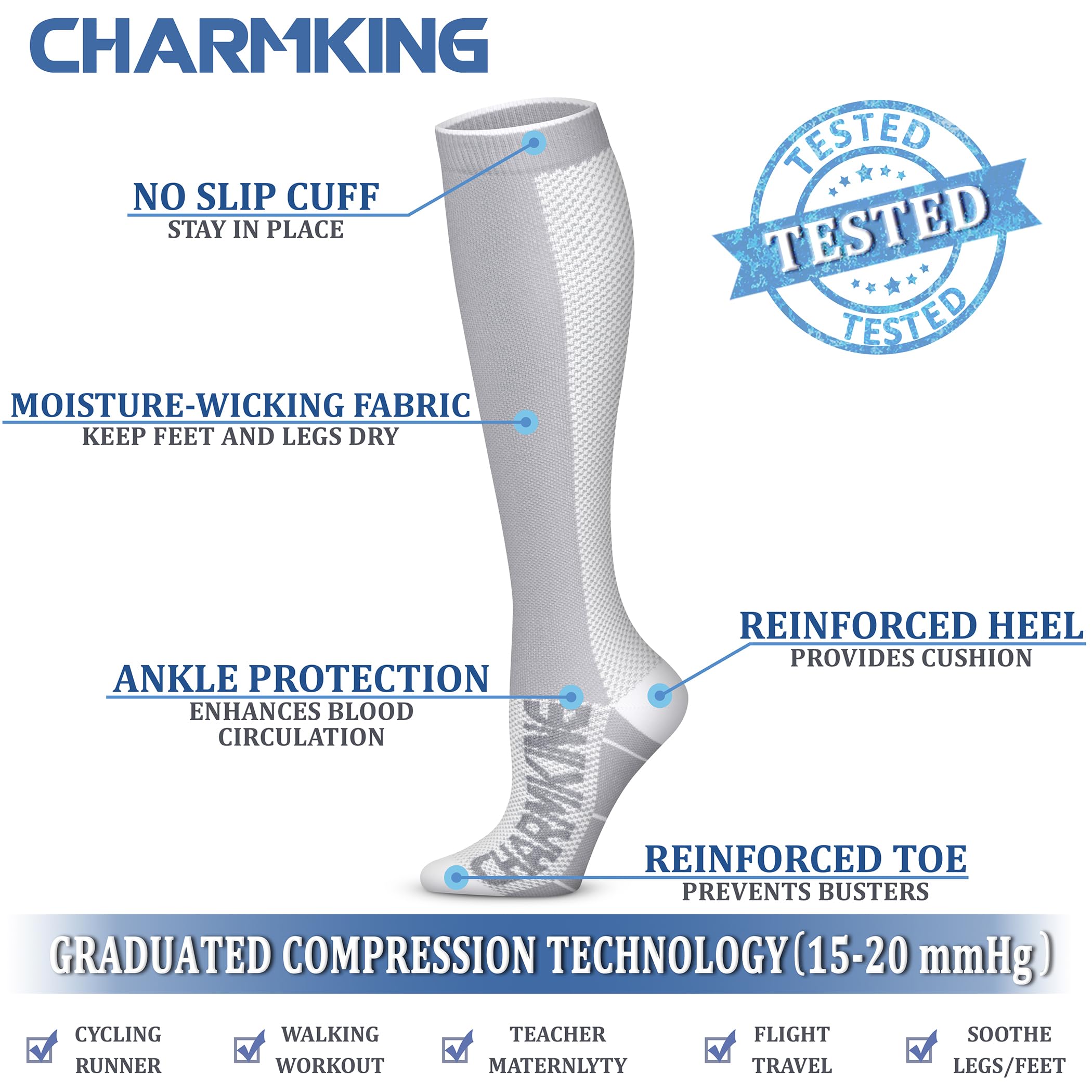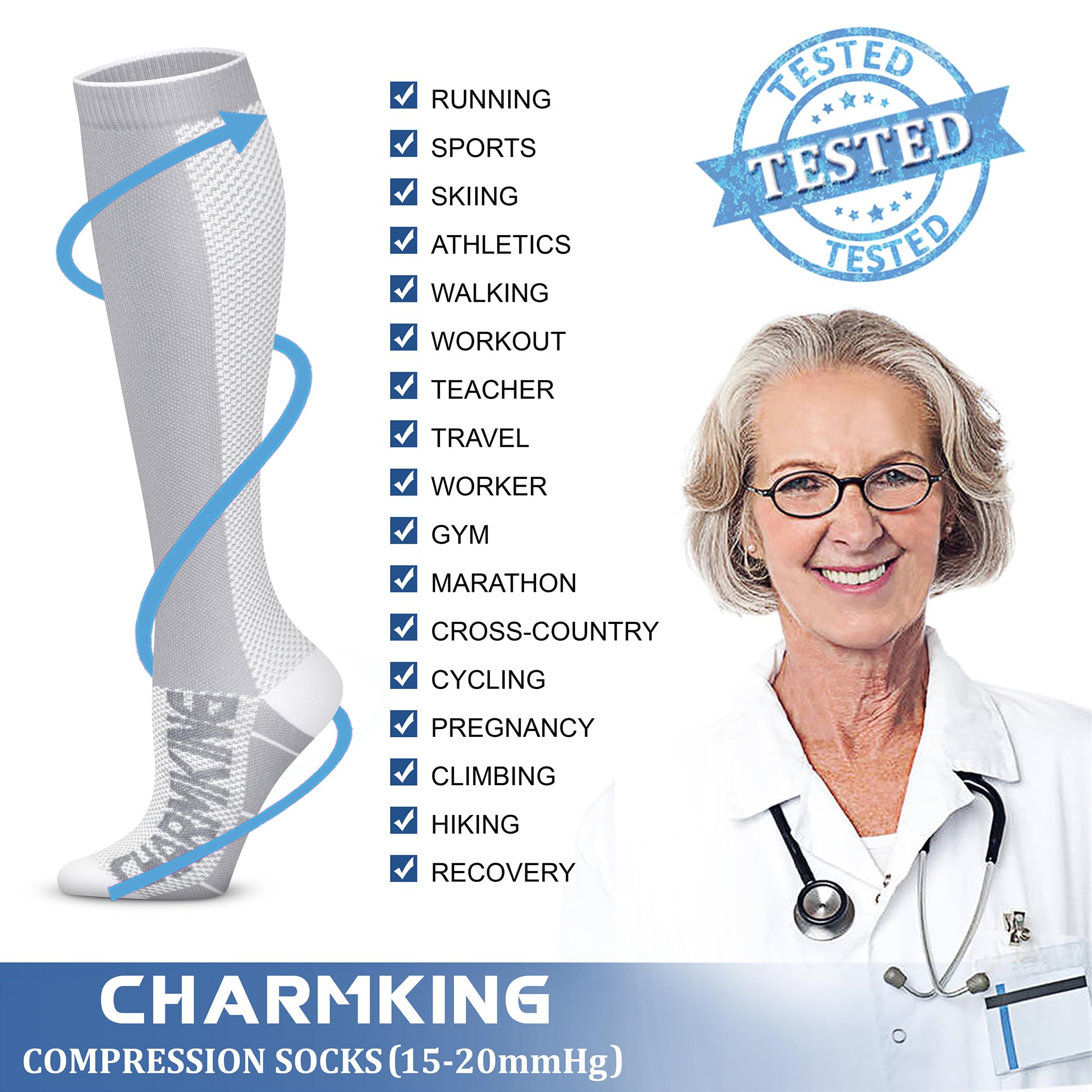 COMPRESSION SOCKS - We intend combining fashion, technology and science to bring you the triple comfort without. The material of our compression socks are upgraded with nylon percentage from 40% to 85%. Delivers 360-degree stretch for greater flexibility and durability. Breathable high performance fabric keeps an optimal temperature.