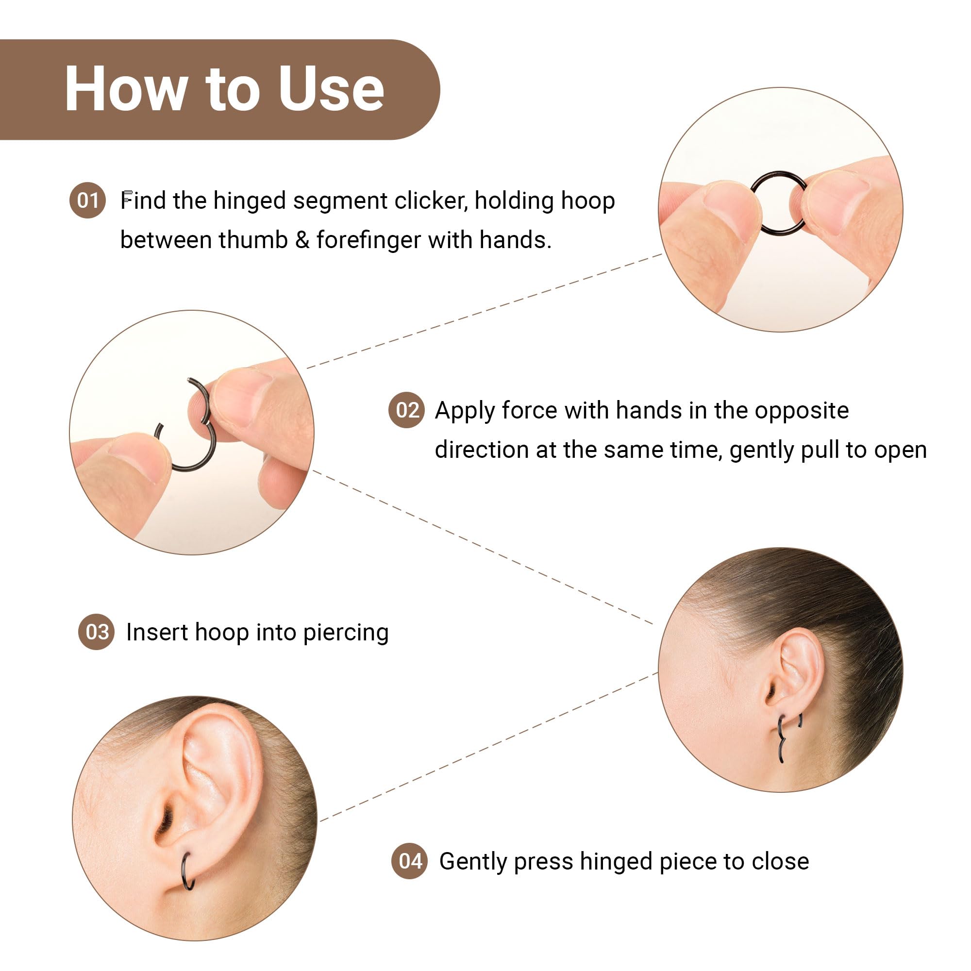 【MULTIPLE USING】: The clicker hoops size are great for helix hoop earrings, tragus hoop earring, cartilage hoops, lip rings, septum clicker and daith piercing, etc.