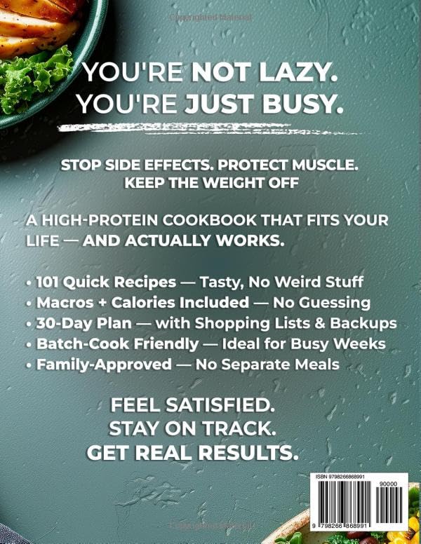 You’re not failing your GLP-1 plan. Your meals are. The injections curb your appetite, but suddenly you’re eating less protein, losing muscle, and hitting a plateau. You feel full but tired. The cravings fade, but so does your energy. The truth? GLP-1 isn’t magic. It’s a tool. And the food you pair with it decides whether you just lose weight or lose fat, keep muscle, and actually feel good in your body. That’s where The GLP-1 High Protein Cookbook comes in. Backed by the bestselling high-protein series trusted by over 10,000 readers worldwide, this is the first cookbook created specifically for GLP-1 users who want to lose fat, keep muscle, and feel strong again. Here’s what’s inside: 🥩 Eat in sync with GLP-1 appetite changes so every small portion fuels fat loss, preserves muscle, and restores steady energy 🍳 The GLP-1 High Protein Formula that keeps you full, supports digestion, and protects your strength ⚡ 100+ ultra-simple recipes with 5 ingredients or less, ready in 20 minutes. No fancy prep required. 📅 A 30-day plan that breaks plateaus and builds habits you can actually sustain 🥗 Meal ideas for every moment: light breakfasts, satisfying lunches, quick dinners, and smart snacks 💡 Real-life strategies to stay consistent even on busy days or when cravings strike ✔️ Even if you’re new to high-protein eating ✔️ Even if you’ve tried other diets and felt frustrated ✔️ Even if you’re worried about losing muscle or energy on GLP-1 Because Feeling Full Isn’t the Same as Feeling Strong GLP-1 helps you stop overeating, but these recipes make sure every bite fuels your body, preserves your muscle, and sustains your progress. Strong, steady weight loss. Muscle preserved. Energy restored. Confidence rebuilt. If you’re ready to finally feel in control, scroll up and click Buy Now today.