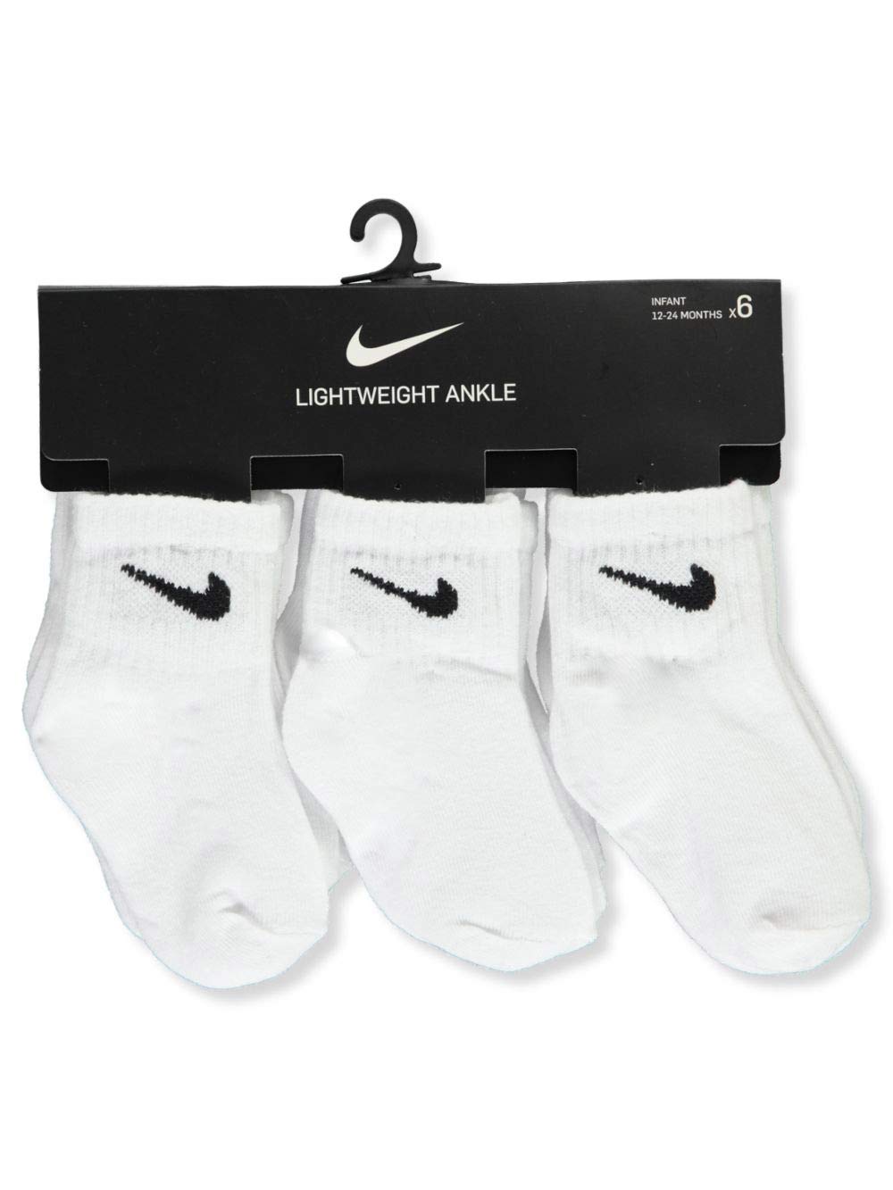 Description Keep baby's toes comfy and covered with this socks 6-pack from Nike. Nike 6-pack socks Includes 6 pairs of socks Knit cotton-blend construction Logo Ribbed ankle cuff 12 - 24M 55% cotton, 41% polyester, 4% elastane Machine wash cold Made in China