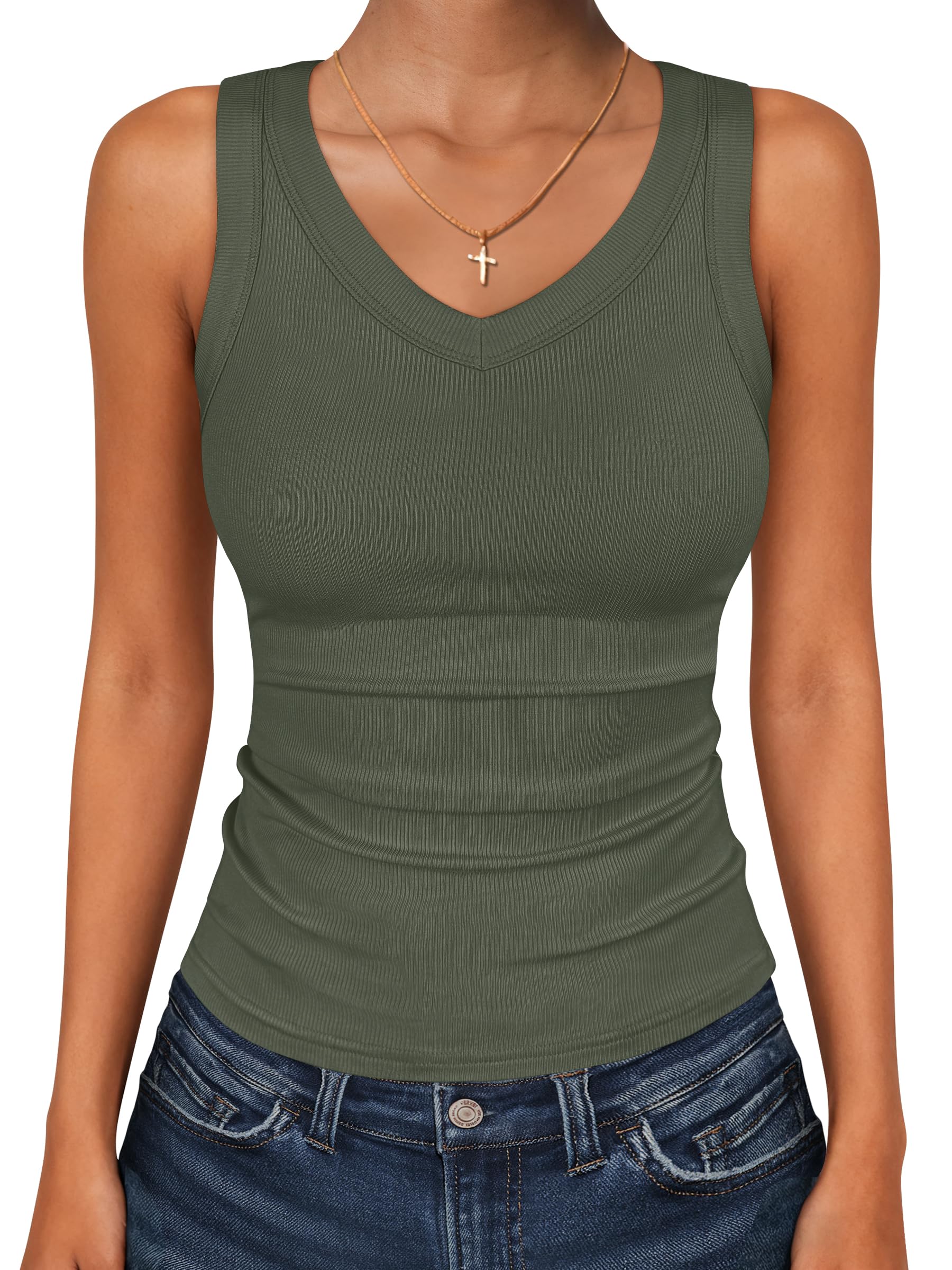 Features - Women's summer tank tops, v neck, short sleeve, ribbed, knitted, slim fit, skinny style. This women's tanks basic tee shirt perfect for daily, casual wear, also can pair with for work, office or athletic wear.