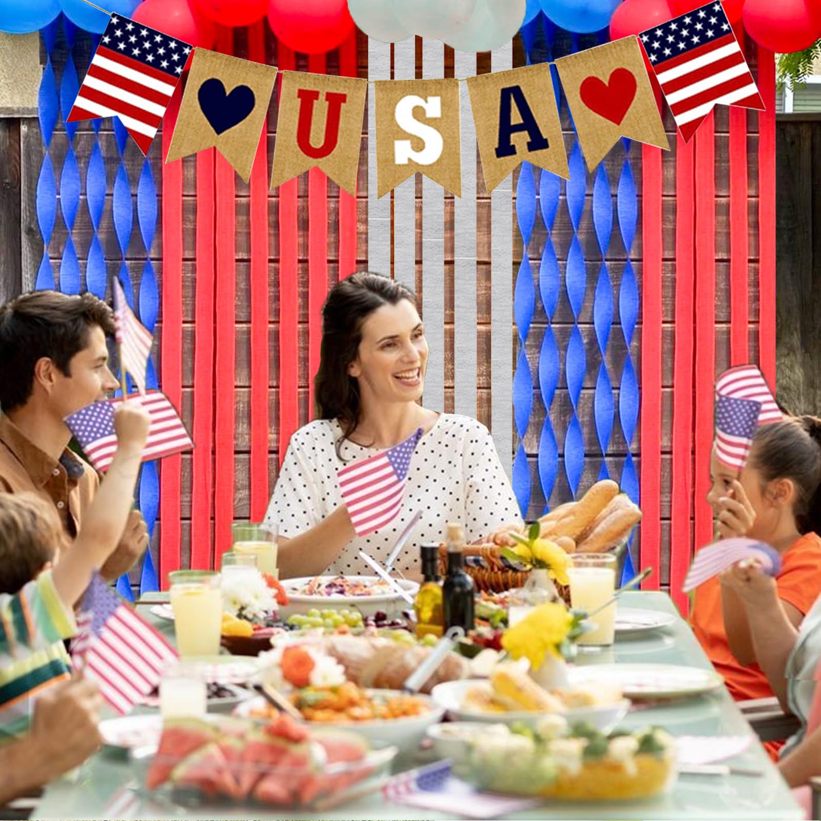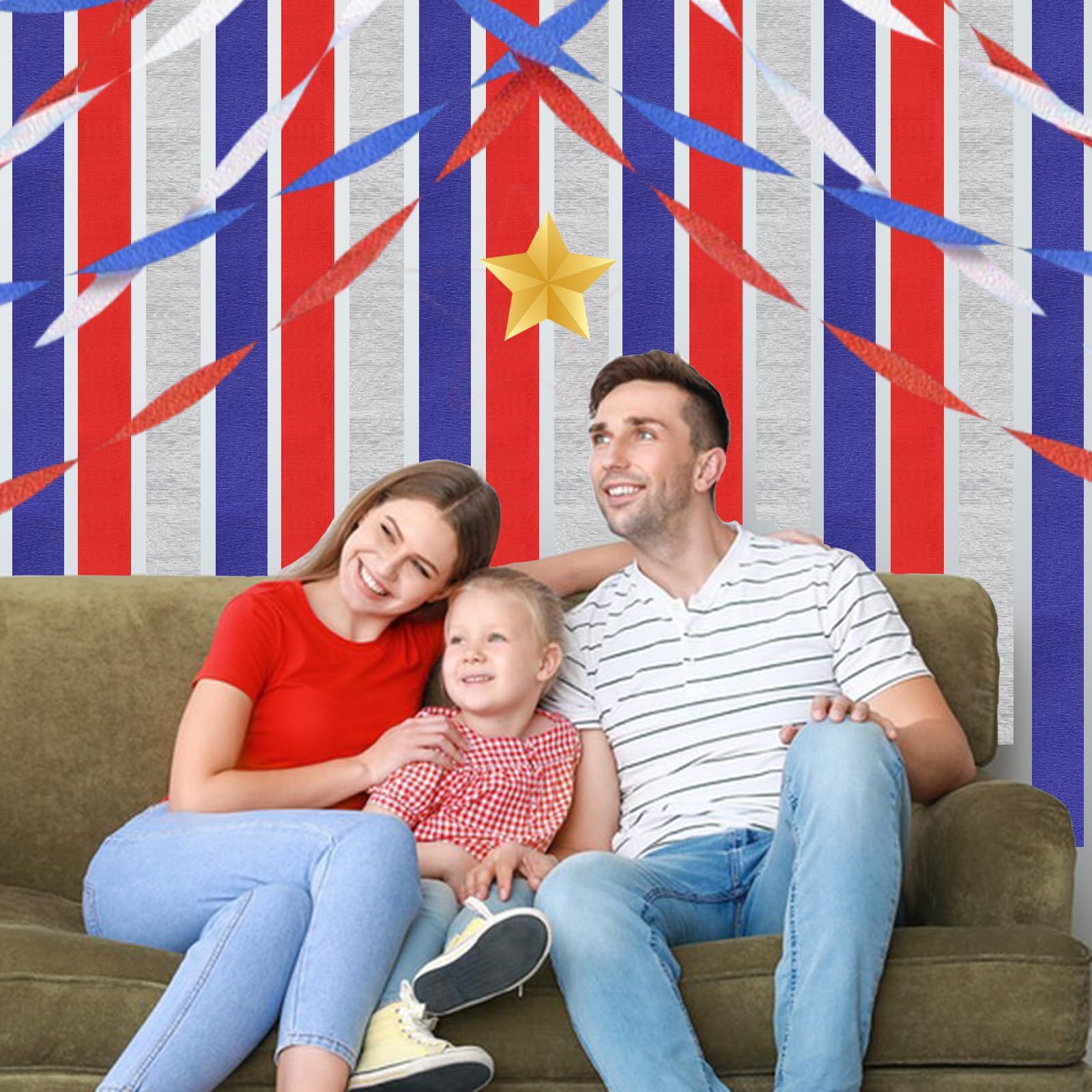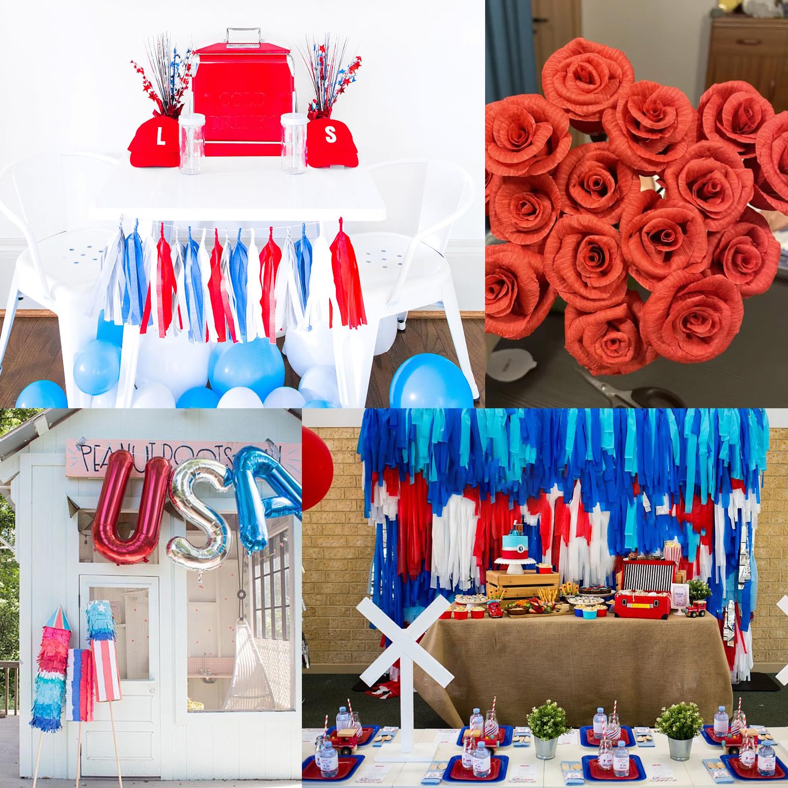 These crepe paper streamers are perfect for decorating for Memorial Day, Fourth of July, Independence Day, and other patriotic holidays. The 6 rolls of crepe paper are each 492 feet long, giving you plenty of streamers to use for your party or event.Independence Day American Theme Party The crepe paper streamers are made of high-quality paper and are decorated with red, blue, and silver tassels, making them a festive and colorful addition to any celebration you can use them both indoors and outdoors without worrying about damage. The streamers are easy to hang and use, and they will add a touch of elegance and sophistication to your party or event. You can simply cut them to the desired length and hang them up using tape or glue. They are also reusable, so you can save money in the long run.,Whether you are hosting a backyard barbecue, a backyard party, or a patriotic-themed event, these crepe paper streamers are the perfect way to add a touch of color and excitement to your celebration.