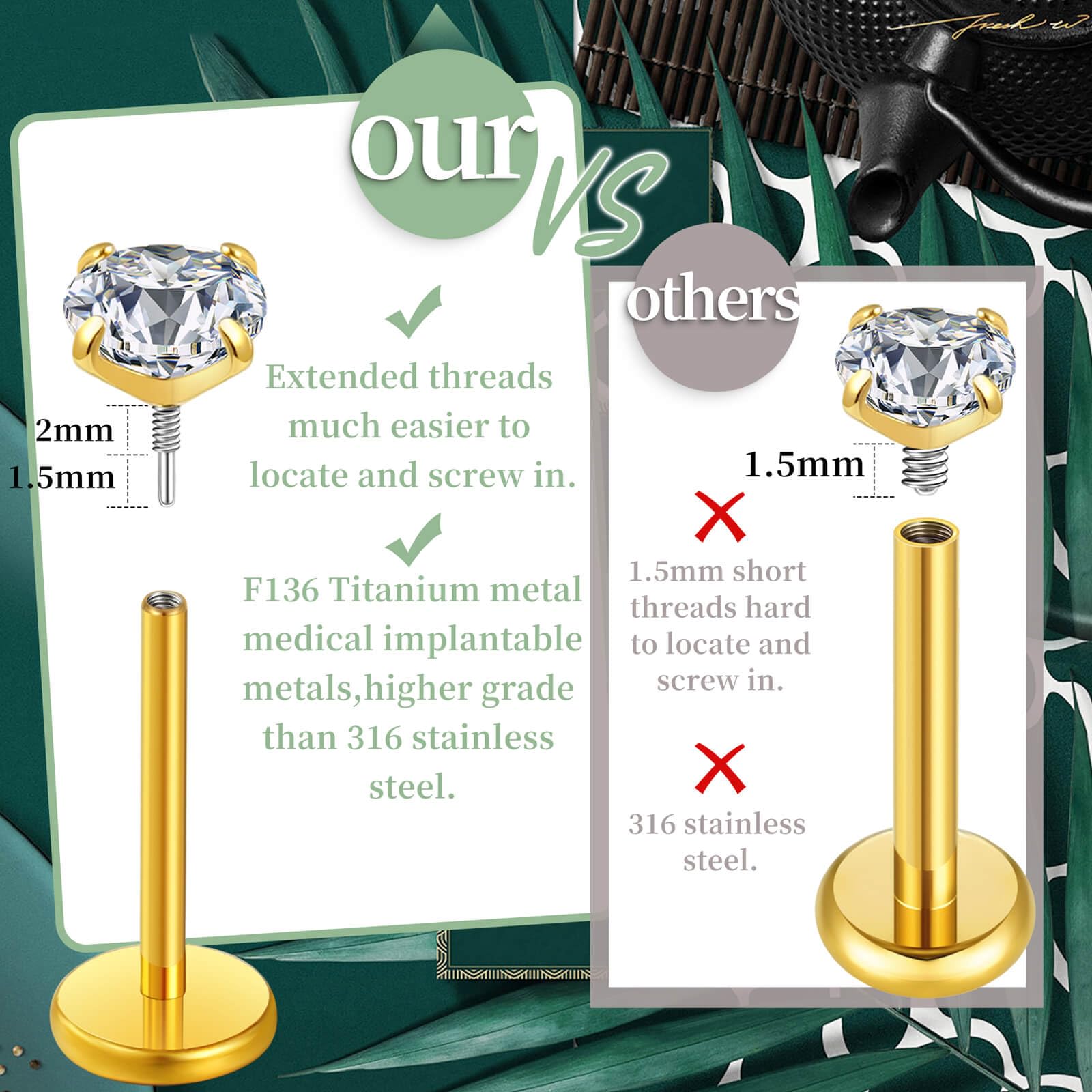 Hypoallergenic and Safety: Our piercing jewelry is made of medical implant grade titanium, nickel and lead free, titanium has excellent biocompatibility and is half the weight of surgical stee.