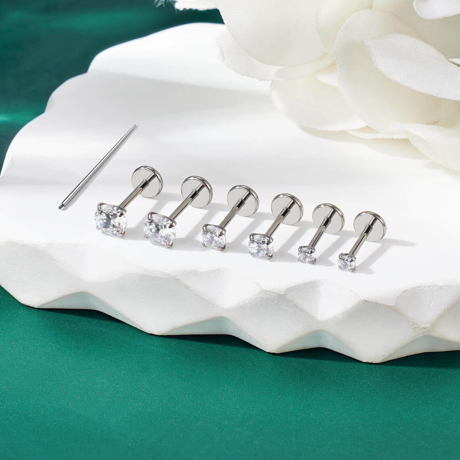Not Only Earrings, But Also Nose Rings: The combination of internal threads and flat design is perfect for earring piercing jewelry, suitable for cartilage earring, nose piercings, tragus, helix, conch, daith, rook, medusa, lip, labret, cartilage earring jewelry.