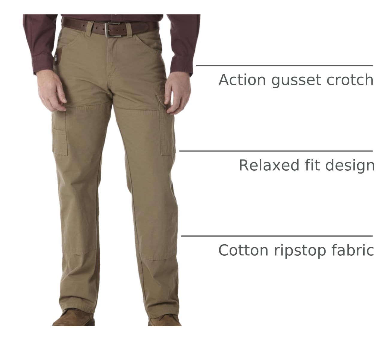 Description WRANGLER RIGGS WORKWEAR: Whatever the job, itβs time to step up. Thereβs nothing like an honest dayβs work done in the right work clothes. Whether youβre a professional electrician, a hobbyist woodworker or construction worker, youβll find our RIGGS WORKWEAR for men is designed with both comfort and utility in mind. Weβve designed clothes with a Room2Move Fit for improved range of motion and have made sure that your clothes are tough enough to withstand anything with features like triple-needle stitching and added reinforcement in high-wear areas. Our Carpenter Jeans, Ripstop Cargo Pants, Ranger Pants and denim come in a variety of colors and a wide selection of menβs long-sleeve shirts, tees, jackets, vests and FR clothing offer versatile, everyday pieces that can be worn mowing the lawn, camping or on the job site. Big and tall sizes deliver a great fit in every size. Made to withstand the toughest work conditions, the most extreme adventures and every casual occasion in between, this collection has your back.