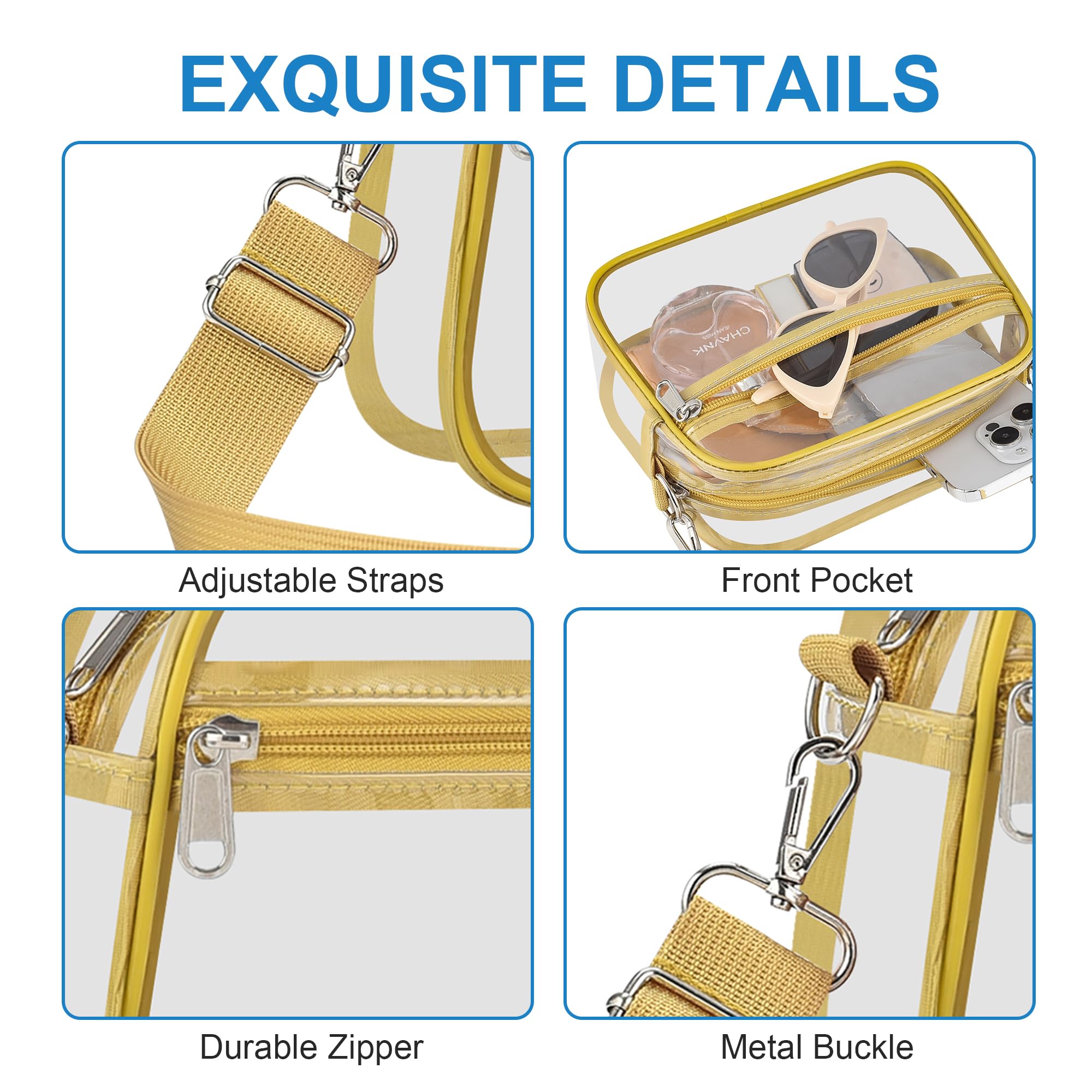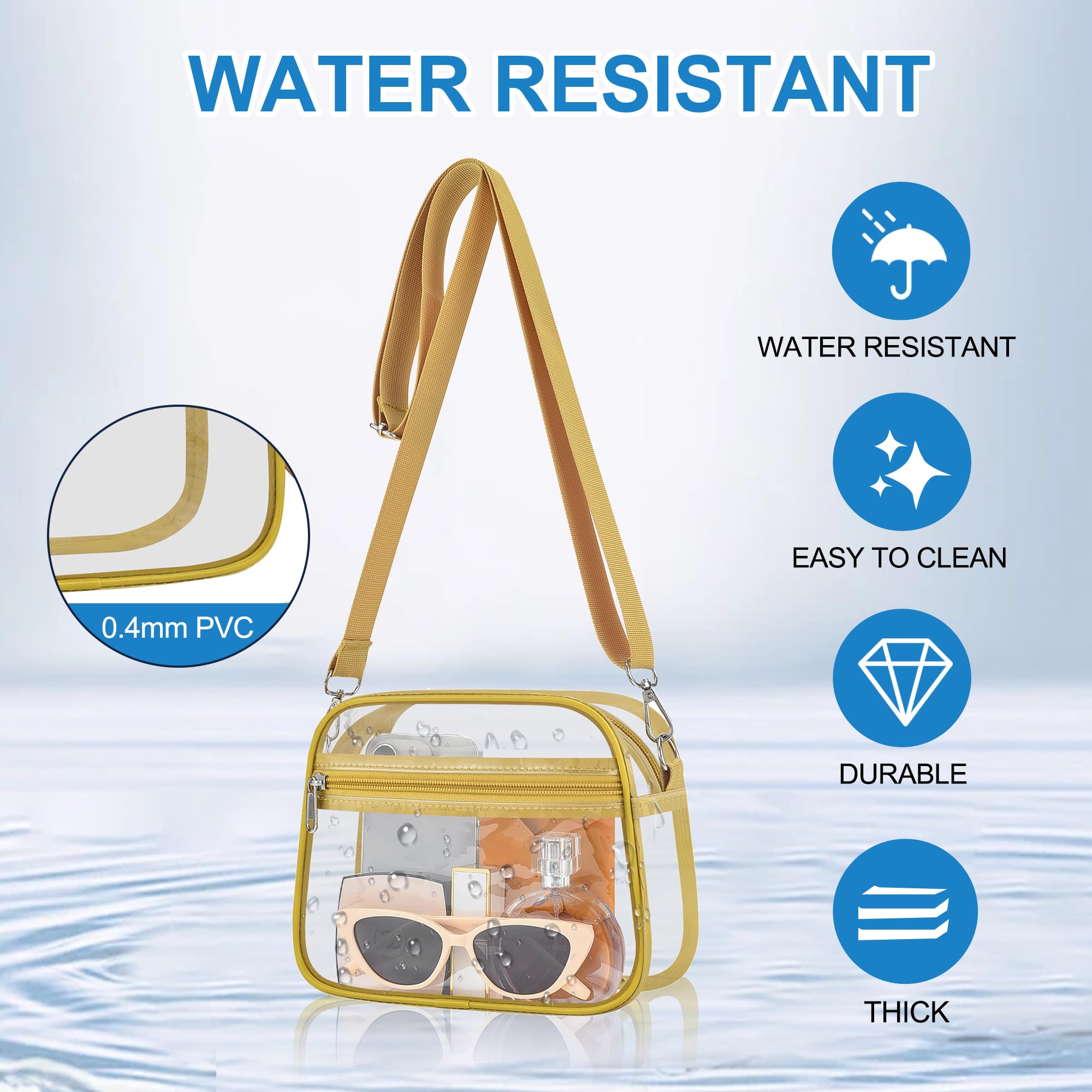 [Water-Resistant PVC Material] Made of durable 0.4mm thick PVC, this small mini clear bag is resistant to deformation and cracking. Its excellent water-resistant properties keep your belongings dry. Note: Avoid exposure to large amounts of water or heavy rain