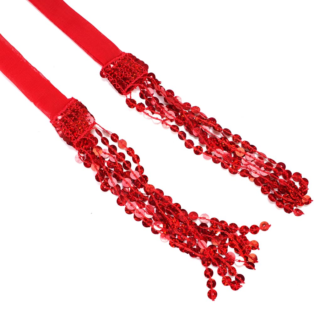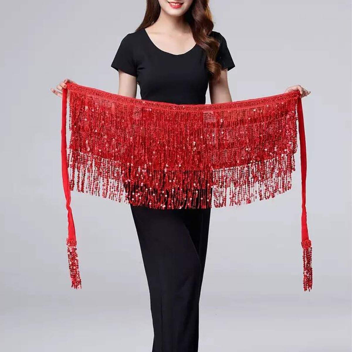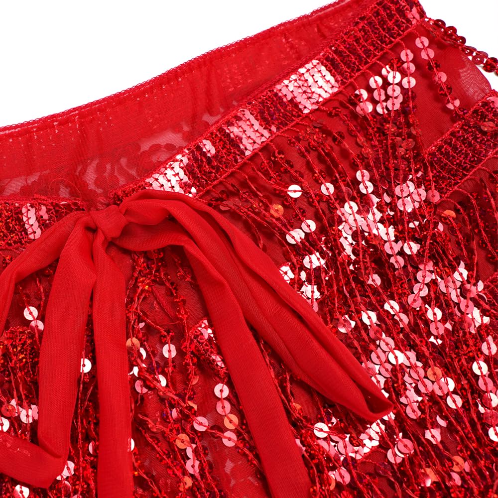 Material: spandex & Sequins. This hip scarf's bottom fabric is see through and need to wear shorts or leggings underneath