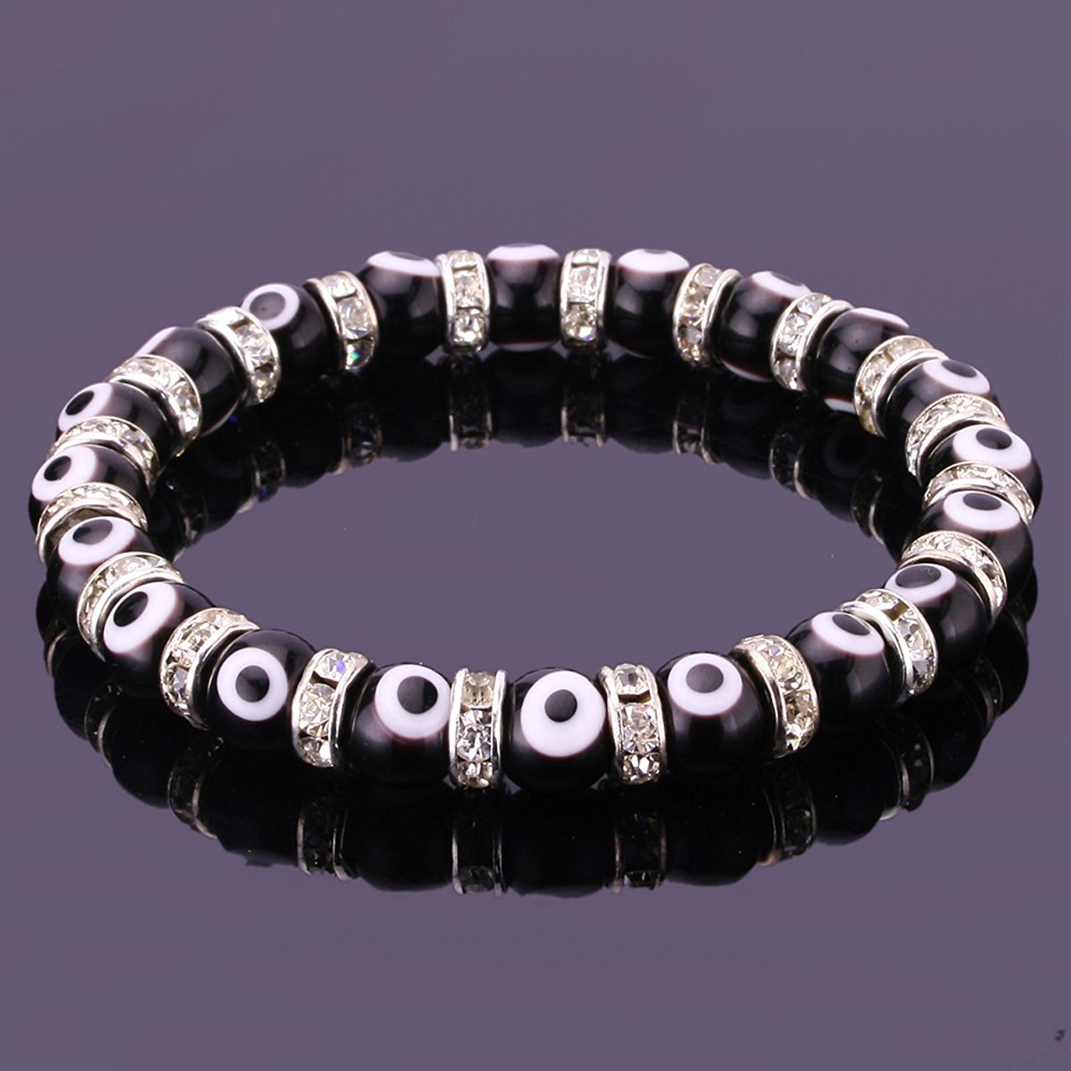 SIZE, QUANTITY AND COLOUR: Ball diameter 8mm with black colour. Evil eye bead paired with rondelle crystal spacers, it can make you look more charming and elegant.