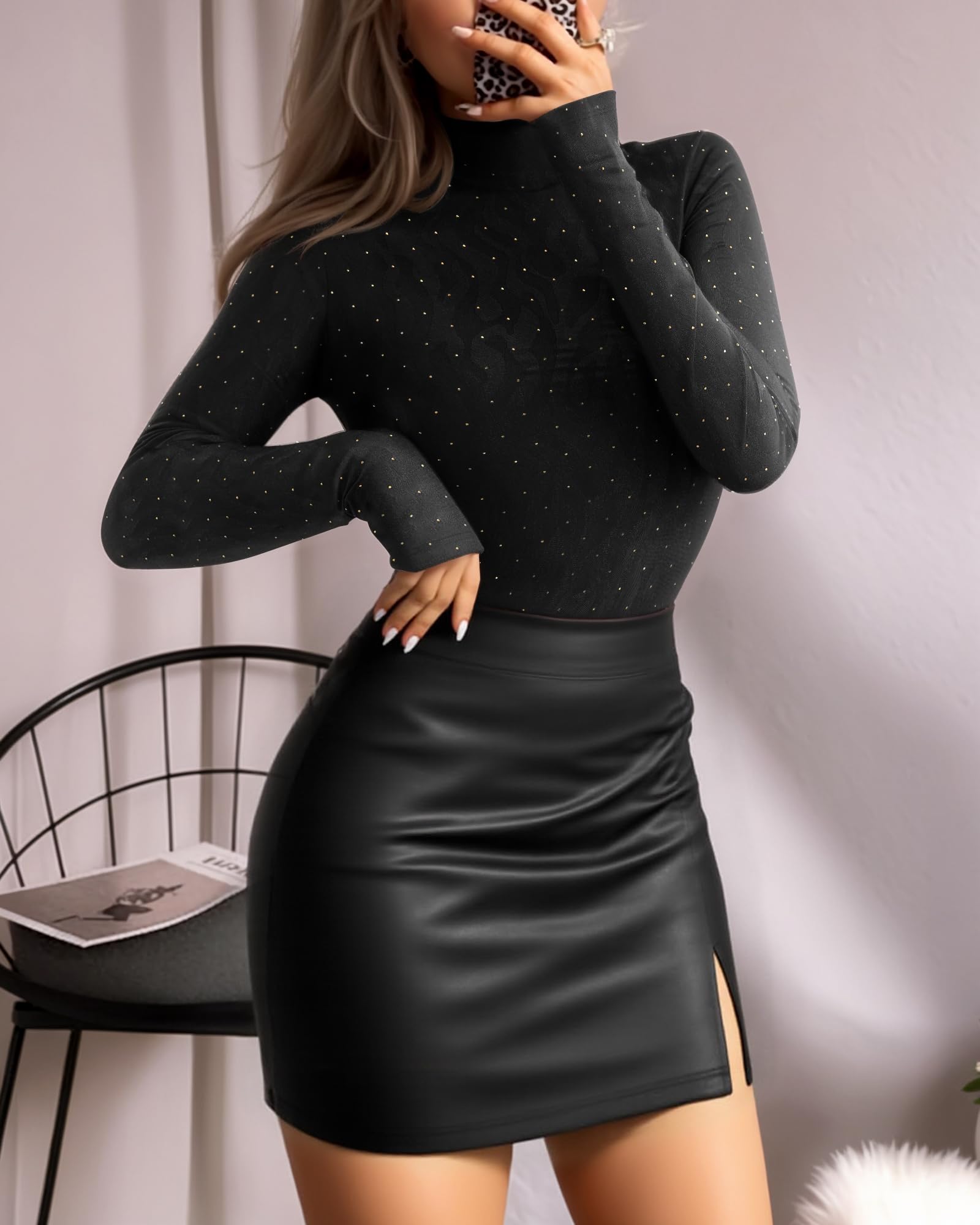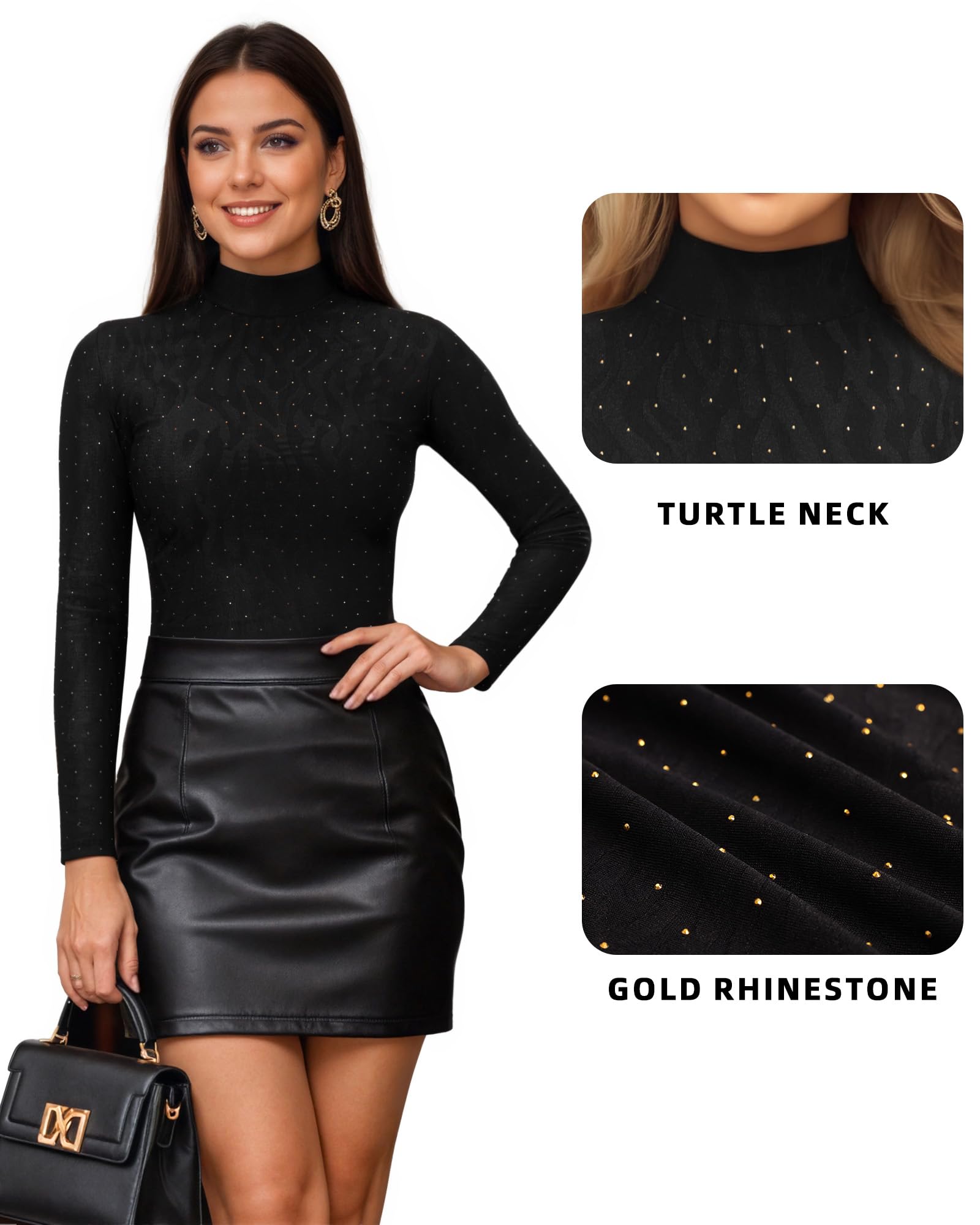 Versatile: Mock turtle neck bodysuit offers a slimming fit and sparkling gold rhinestone details that add a touch of glamour to any look. Perfect for pairing with skirts, pants, or shorts, this elegant concert top ensures you stand out in any vibrant setting with its dazzling, eye-catching design.
