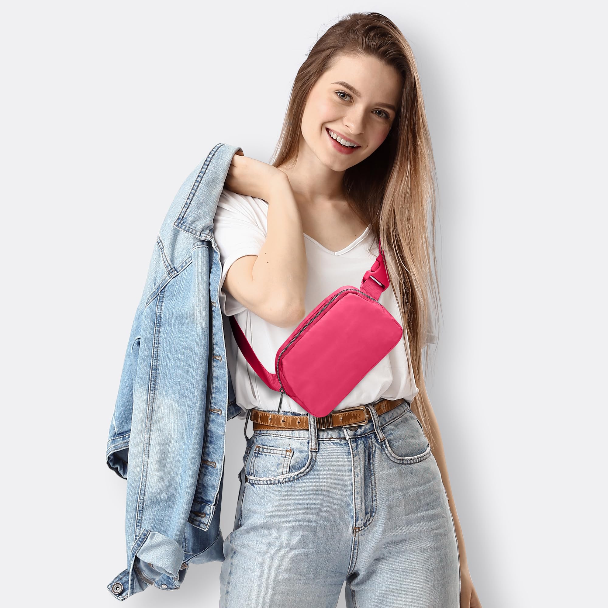 ✅ Stylish & Versatile Adjustable strap offers 3 wearing styles: crossbody, shoulder bag, or waist pack. Features 5 secure compartments (1 main + 3 mesh + 1 hidden pocket) for essentials like phones, wallets, keys, and travel documents.