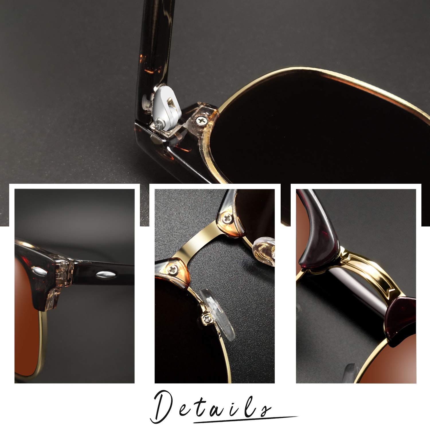 Anti-Glare Polarized Lenses: Adopting the latest 9-layer Polariboost lens technology, horn rimmed sunglasses provide a better eyes protection. Polarized lenses of half rim shades for men women can reduce glare reflected off of roads, bodies of water, snow, and other horizontal surfaces. whether you wear this vintage anti glare sunglasses for driving, walking, shopping, fishing, gardening or other outdoor activities, You will get excellent eye protection