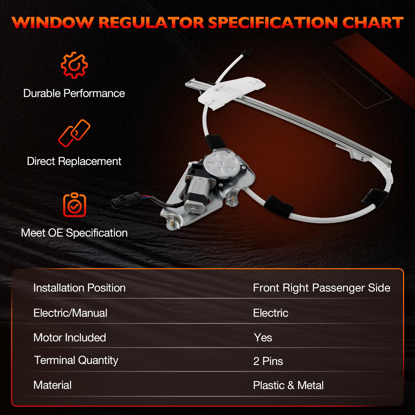 【Easy Installation】Front Right Passenger side with pre-installed motor. Plug-and-play setup—no splicing, drilling, or modifications required.