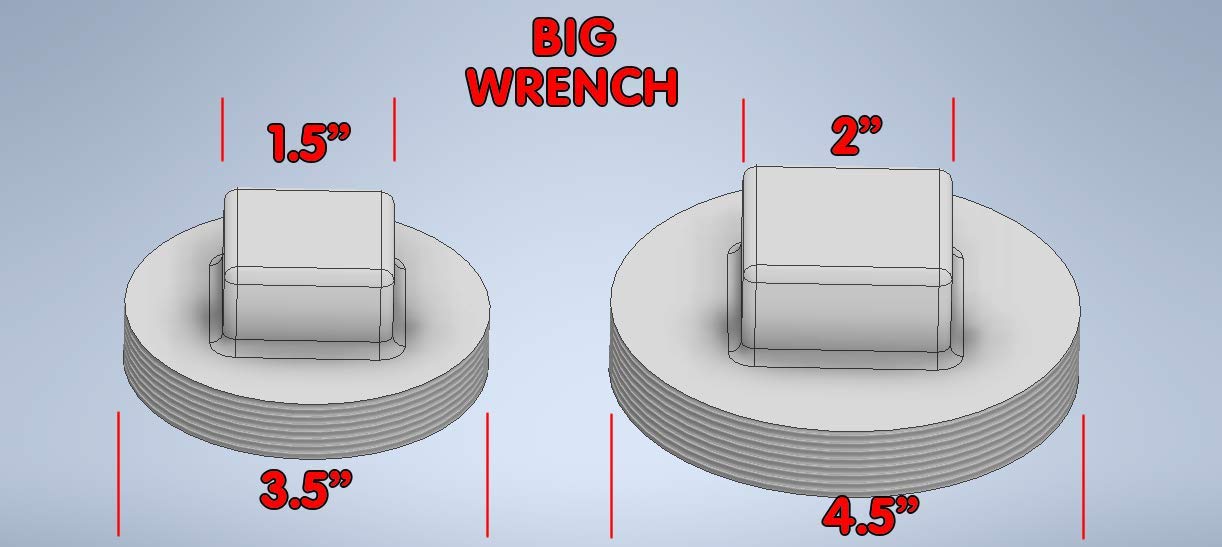 ✔ fits 3 inch and 4 inch diameter PVC sewer plugs that have 1.5" -2.0" dia sewer plug squares