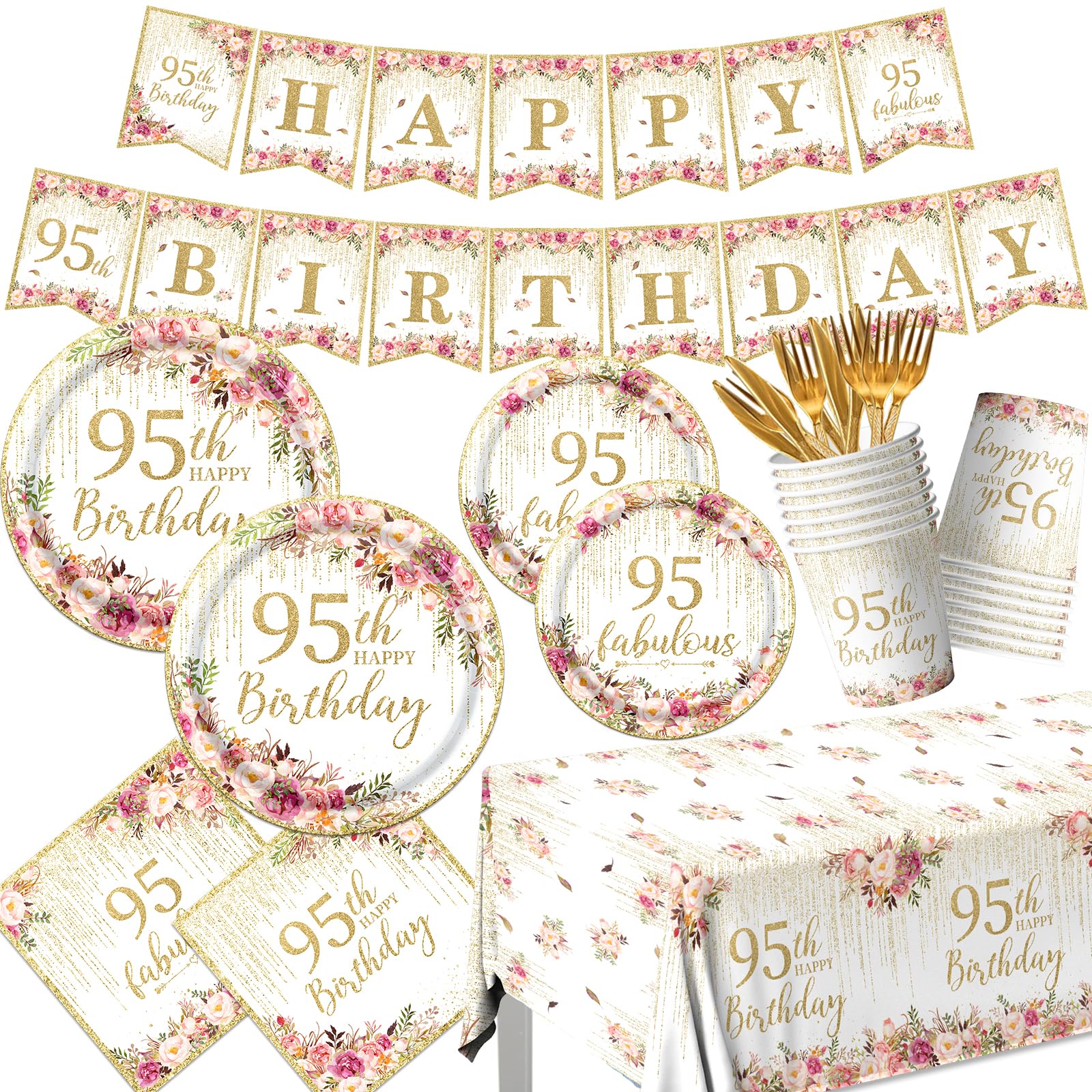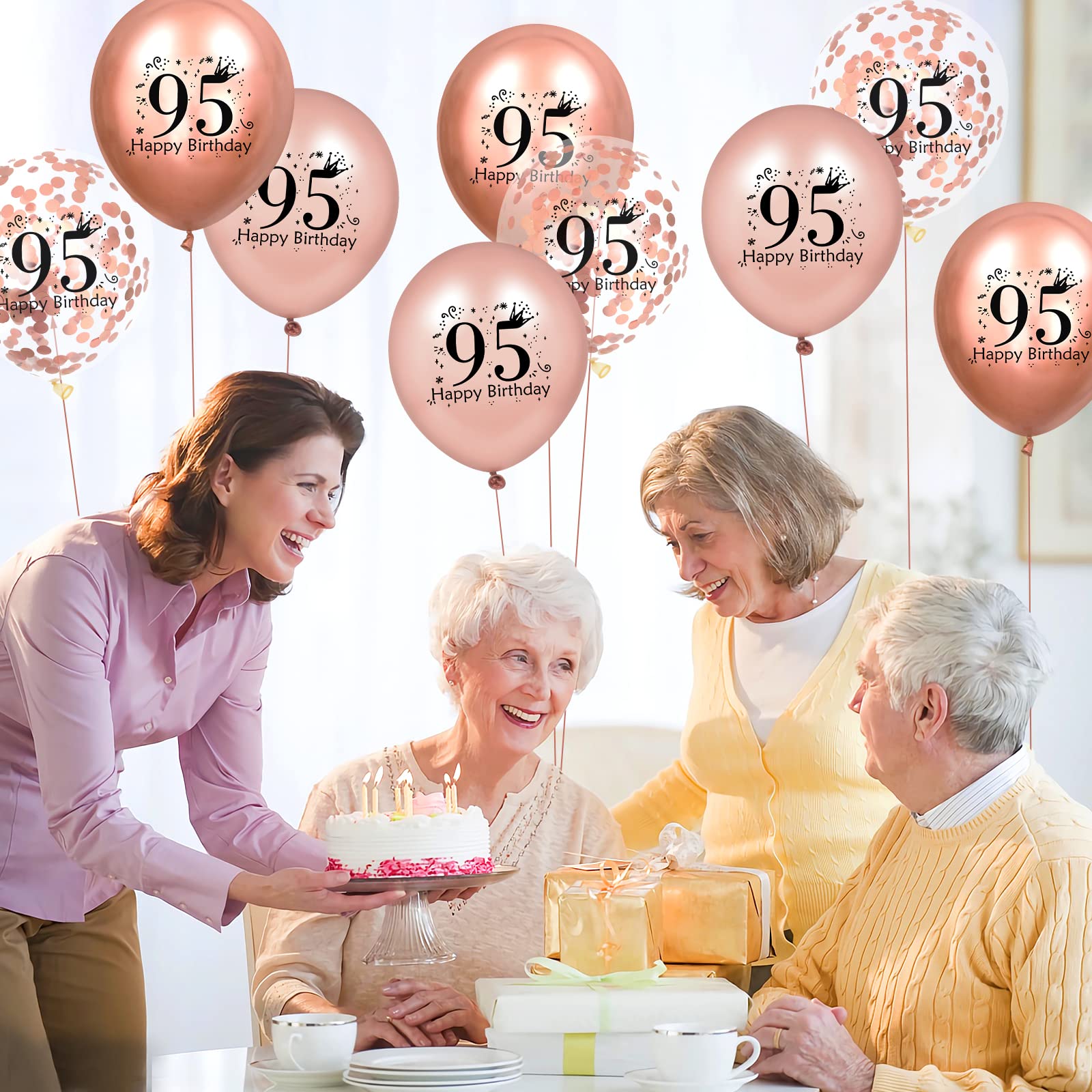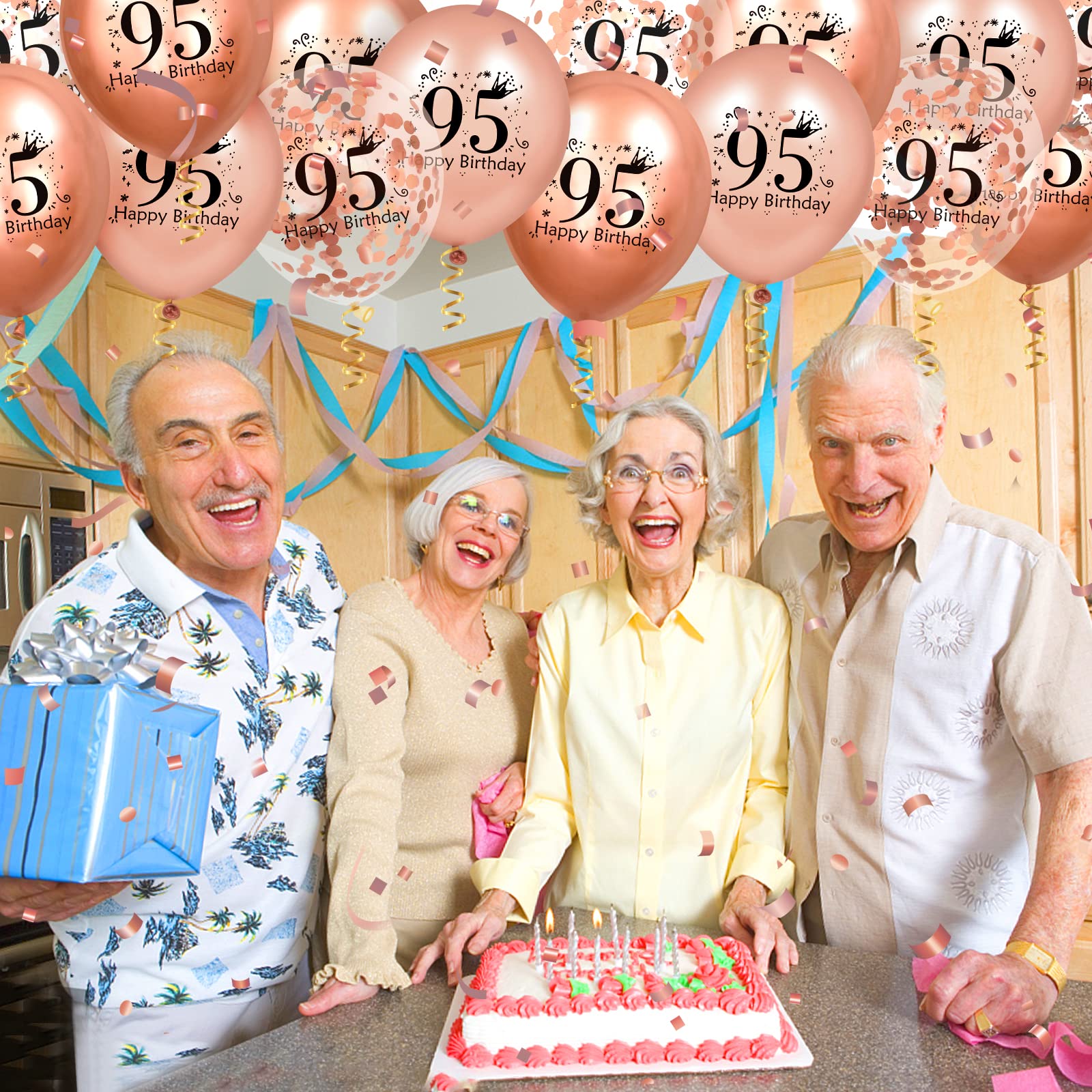 Happy Birthday Decor: Features a 95th birthday party decoration with metallic rose gold and confetti design to make your party special.