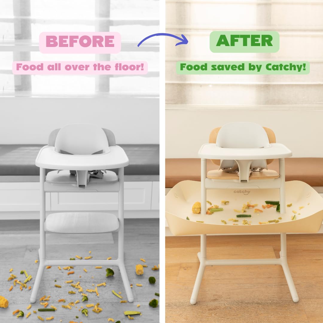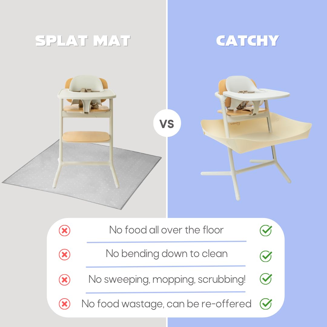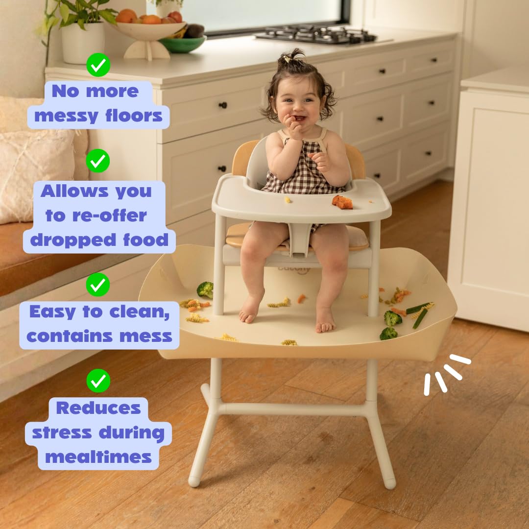 SAVES YOUR FLOOR & CONTAINS MESS: Catches food dropped or thrown by baby, say goodbye to ruined carpets and stained floorboards.
