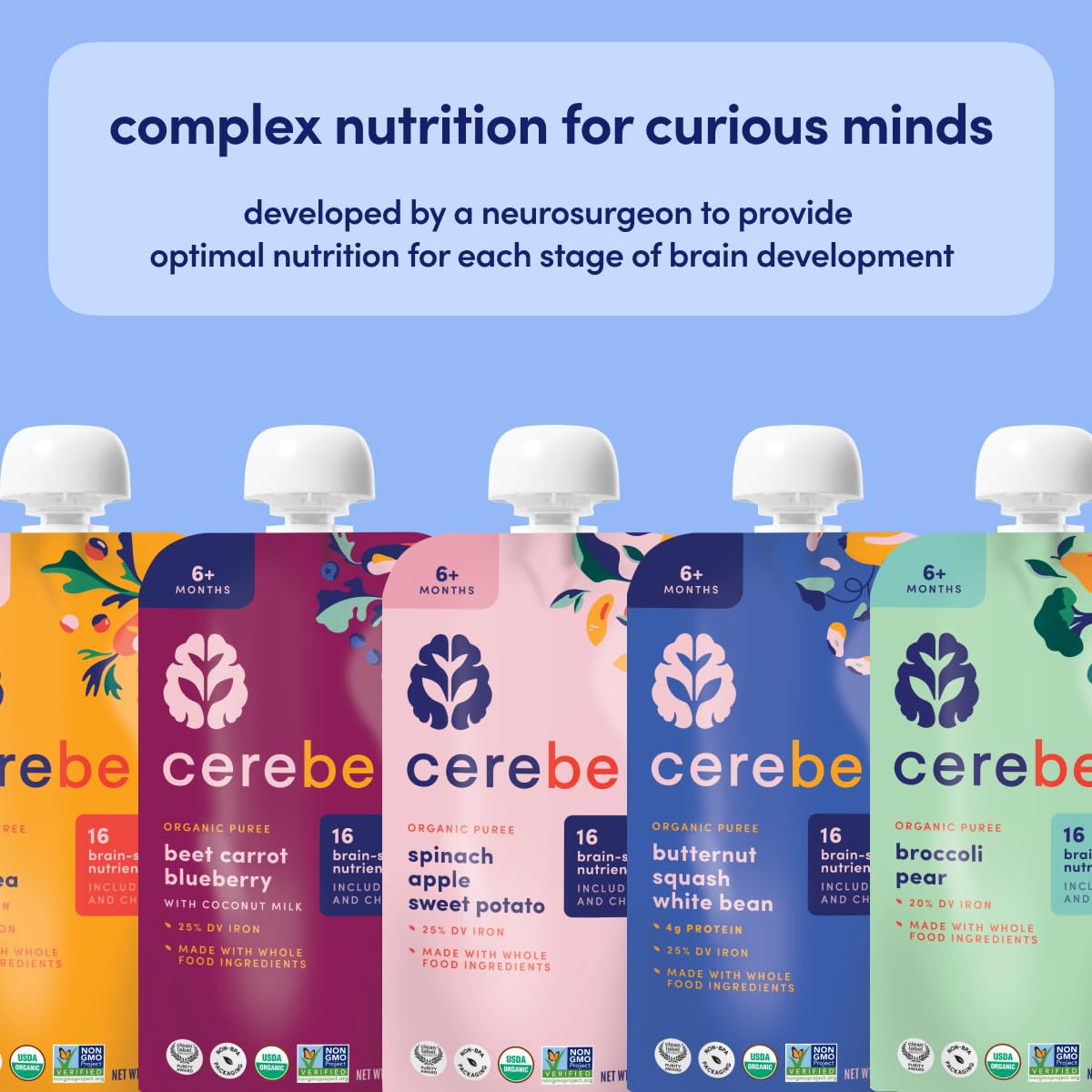 16 BRAIN-SUPPORTING NUTRIENTS β Baby smoothie pouches with vitamin A, iron & vitamin D to fuel healthy brain and body development