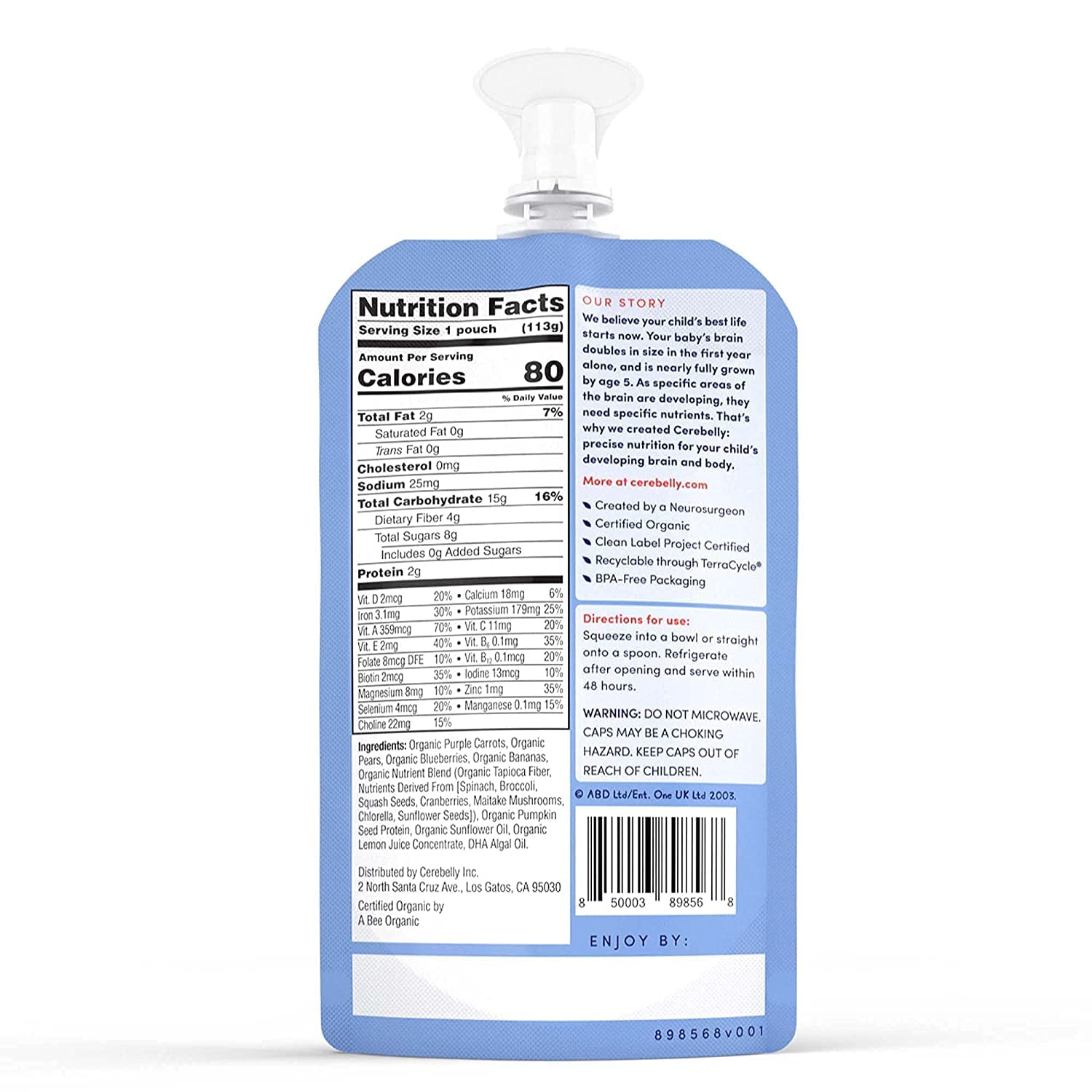 SAFETY & TRANSPARENCY β At Cerebelly, we test every batch beyond legal standards and print expiration dates (MM/DD/YYYY), best buy dates (MM/DD/YYYY), and lot codes (Julian date: YY-DDD) on every product, giving you full transparency and peace of mind