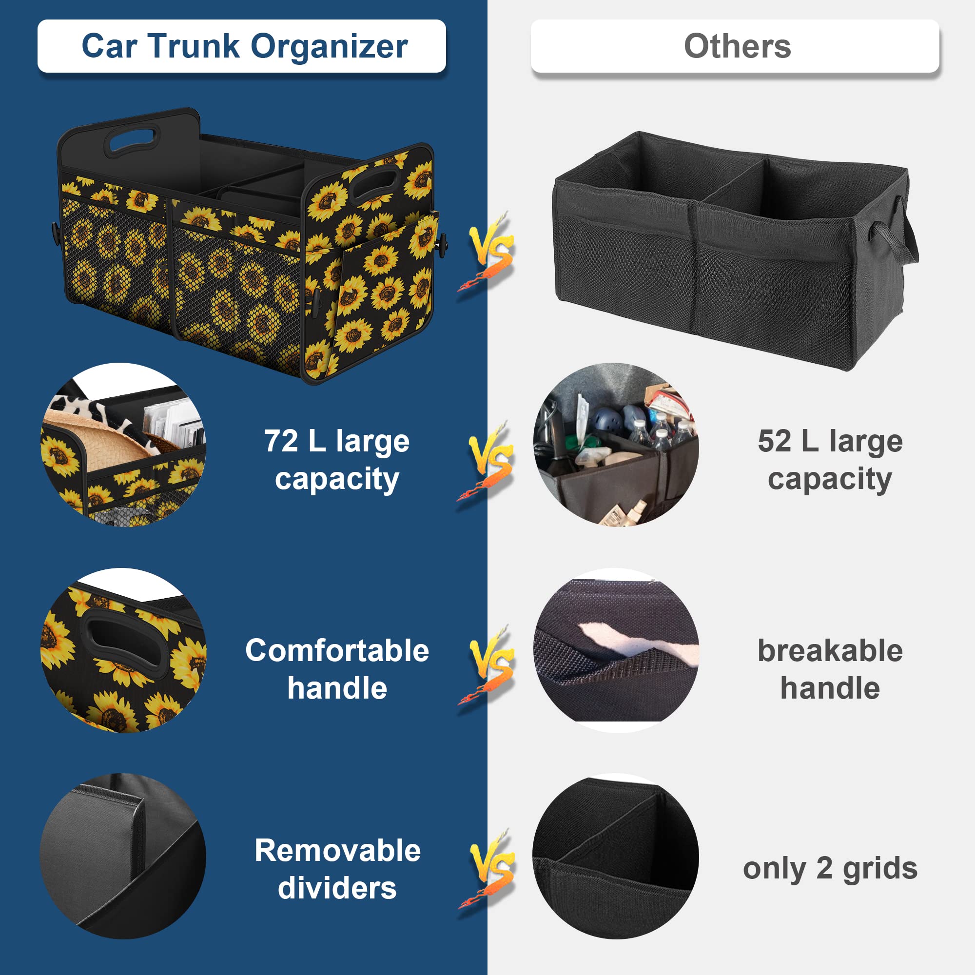 【Large Capacity Trunk Organizer】:Upgrade the car trunk organzier capacity. Most of the car organizers in the market have a capacity of 50L-60L, but our trunk organizer has a capacity of 72L, which is 10L-20L more than similar trunk oganizers.