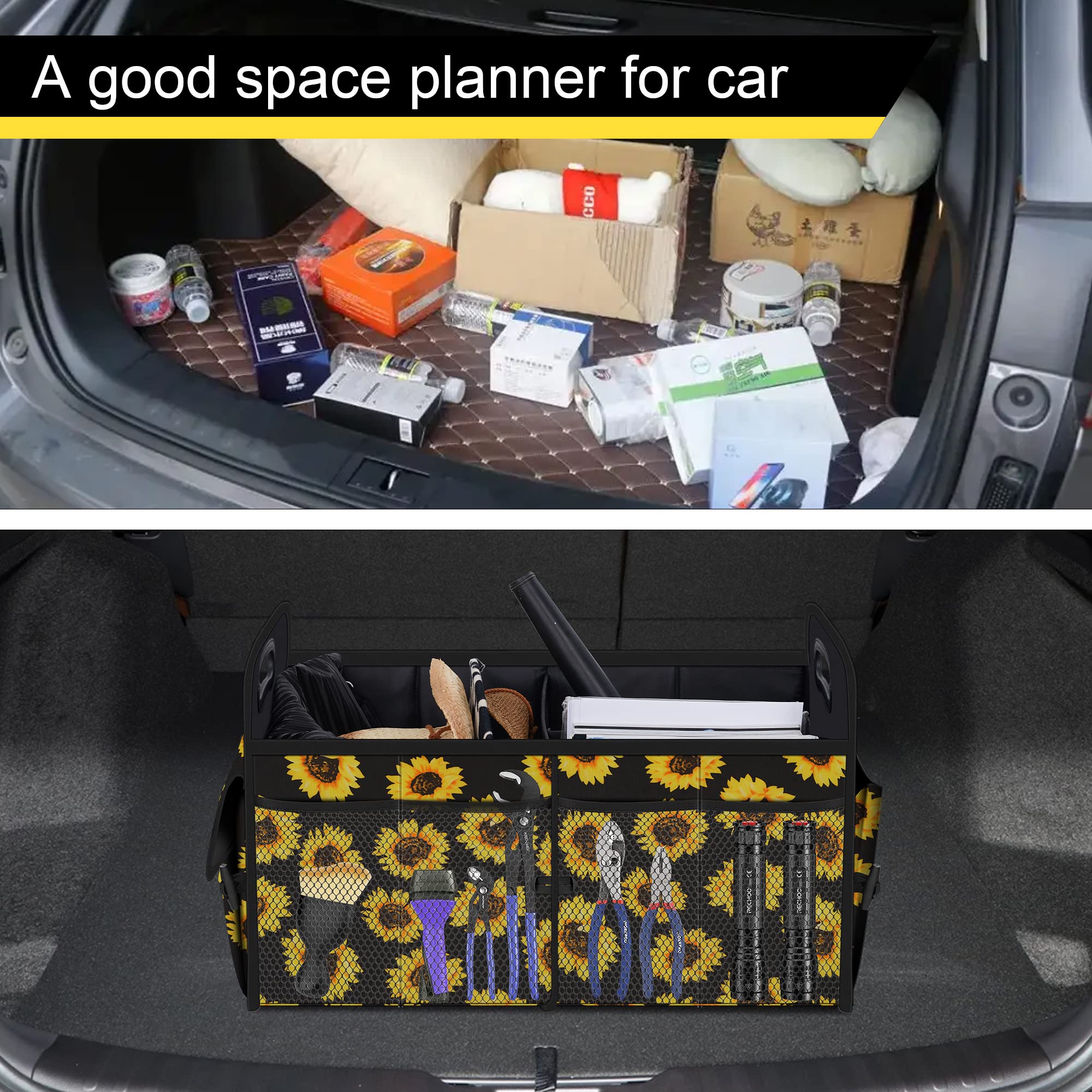 【Trunk Organizer for Car】:This is the optimal solution for maintaining a clean car interior as car accessories. Suitable for all vehicle types, like trucks, SUVs, vans, jeeps, cars, etc., and it's fantastic for transporting and arranging groceries, toys, athletic equipment, tools, and more in your trunk. Eliminate trunk clutter situation with this car organizer.