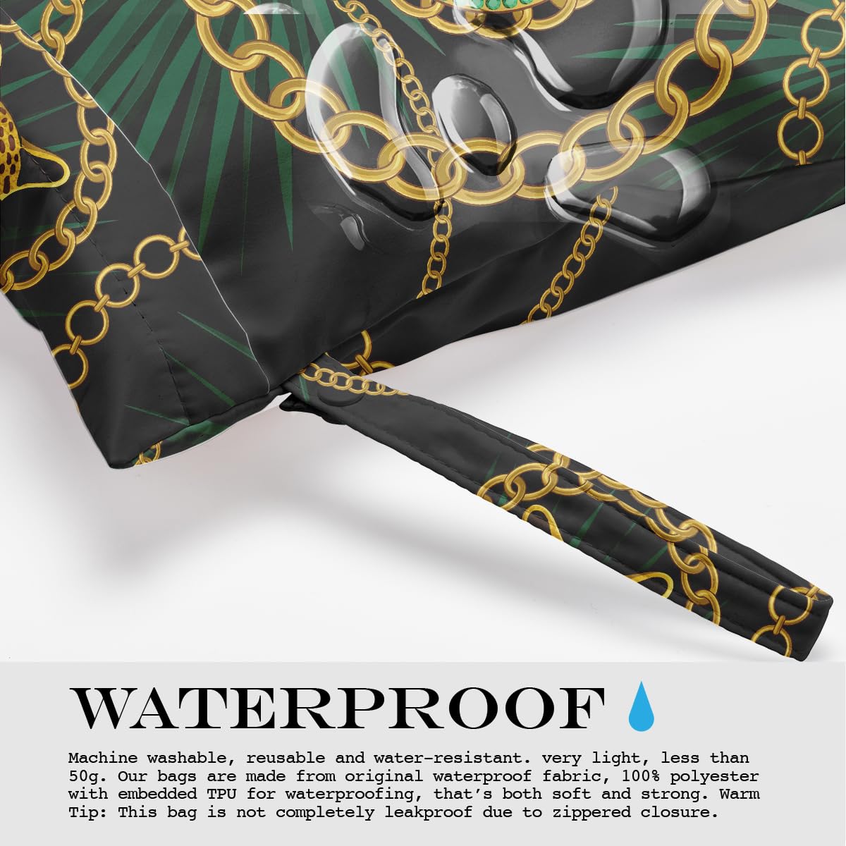 WATERPROOF - Machine washable, reusable and water-resistant. very light, less than 50g. Our bags are made from original waterproof fabric, 100% polyester with embedded TPU for waterproofing, that’s both soft and strong. Warm Tip: This bag is not completely leakproof due to zippered closure.