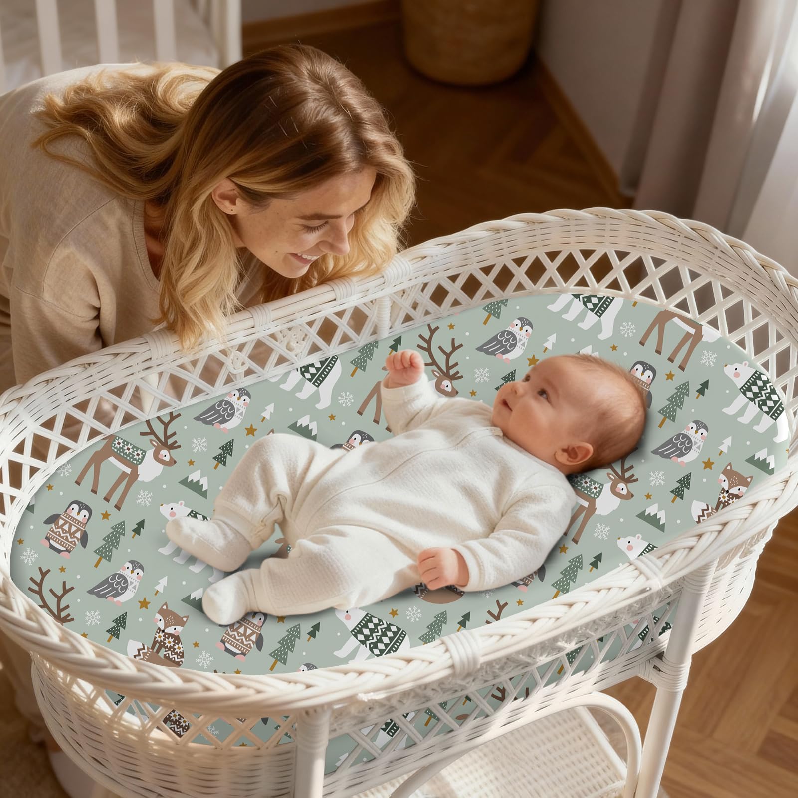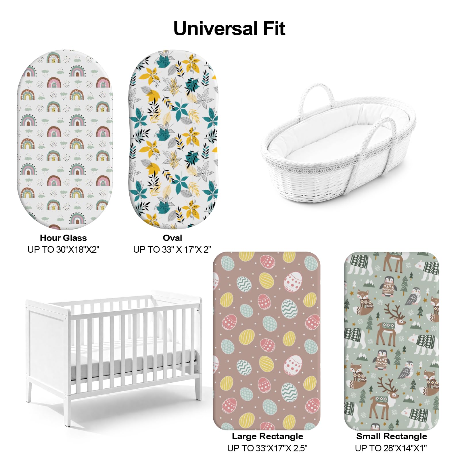 Perfect Fit: The soothing bassinet fitted sheet measures 32x16 inches and is up to 4 inches thick, making it compatible with a wide range of mattress brands. It's compatible with hourglass, oval, rectangular, and round bassinet shapes, providing comprehensive protection for your baby.
